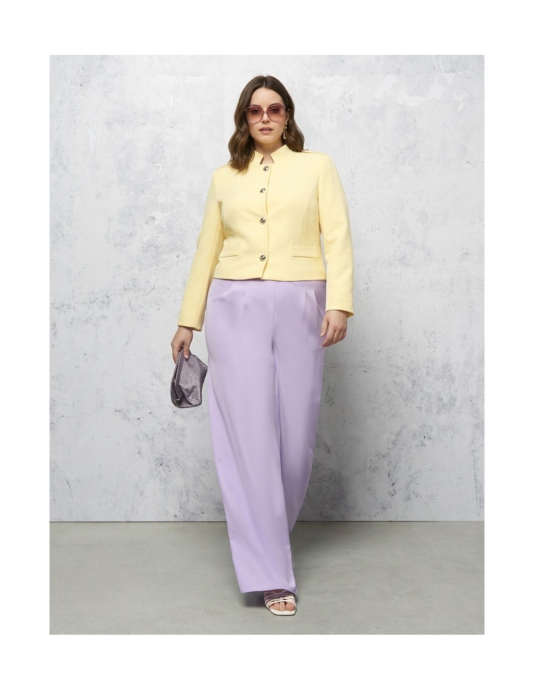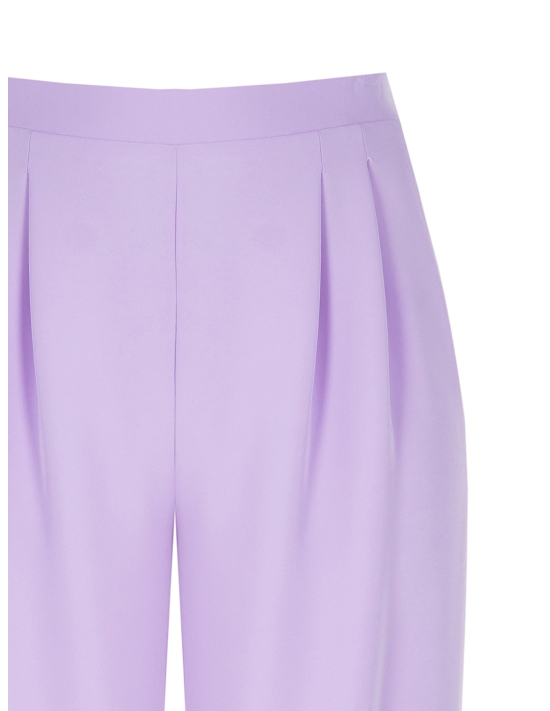 Silhueta ampla e fluida, com um corte suave que acompanha a silhueta e alonga com naturalidade. Em tecido técnico com textura lisa e toque confortável, apresenta pregas frontais e cintura elástica na parte traseira para um conforto que dura todo o dia. Perfeito para escritório e chique do dia a dia.