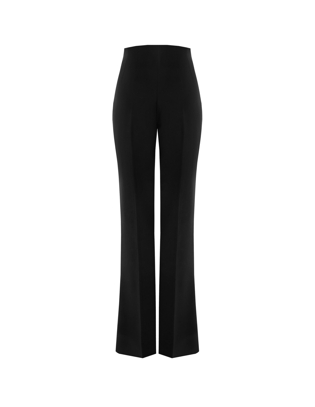Rinascimento assina uma calça de cintura alta com um ajuste fino na coxa e alargado na parte inferior, que alonga a silhueta. Confeccionadas em tecido técnico elástico e compacto, acompanham os seus movimentos com conforto. Linhas simples, dardos modeladores e fecho lateral invisível. Perfeito para o escritório e para depois do trabalho com um blazer ou camisa.