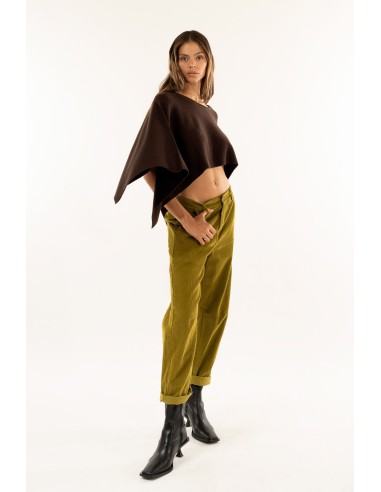 Kontatto reinterpreta a calça casual com cintura baixa e perna de cenoura macia: veludo cotelê para uma textura rica e confortável, dardos no joelho e fundo virado para cima para um toque contemporâneo. Bolsos de remendo nas costas e fecho à frente. Perfeitas para o dia a dia urbano, do brunch ao escritório criativo.