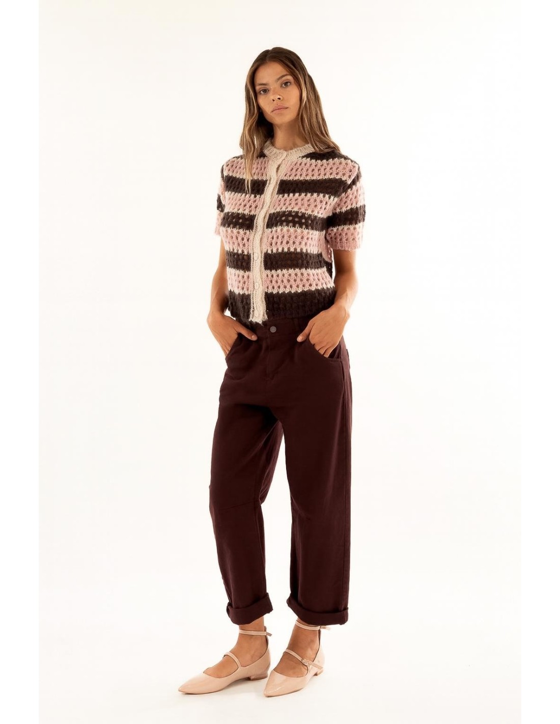 Kontatto assina um modelo de cintura baixa com um corte descontraído e perna direita, em algodão macio com uma mão ligeiramente estruturada para conforto quotidiano. Bolsos americanos e um fecho de botões expostos adelgaçam a silhueta; viragens ajustáveis para personalizar o comprimento. Perfeito para o dia a dia e para a sexta-feira casual.
