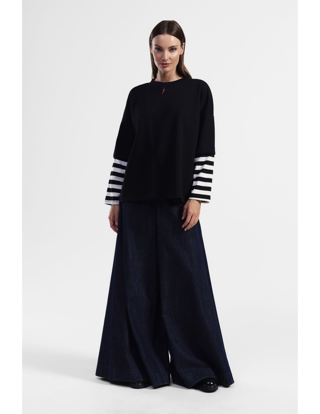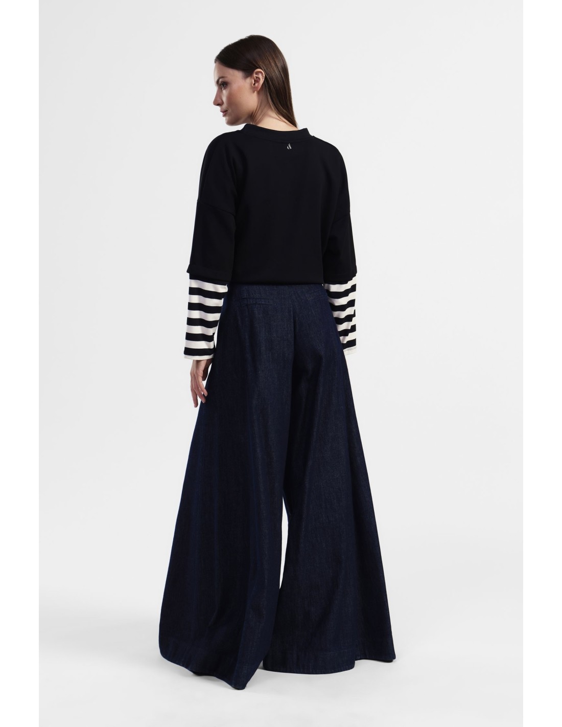 Perfeitas para quem gosta de sair da caixa e de se destacar com um toque de classe. As calças de ganga de perna larga acariciam a silhueta enquanto o corte de cintura alta oferece um toque de modernidade sofisticada. Ideais para um look arrojado e sofisticado que não passará despercebido, estas calças de ganga são a companhia perfeita para expressar a sua personalidade em qualquer ocasião.