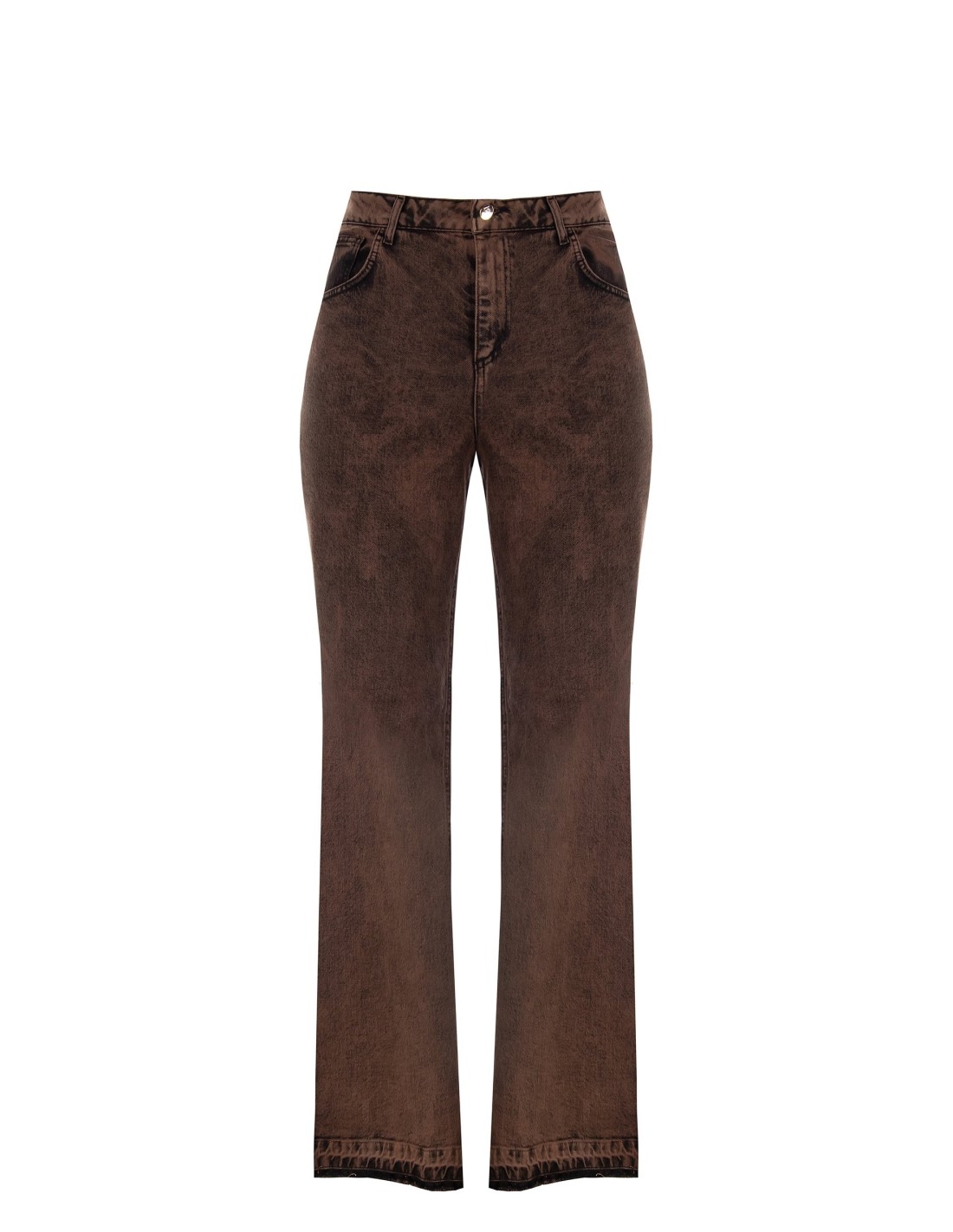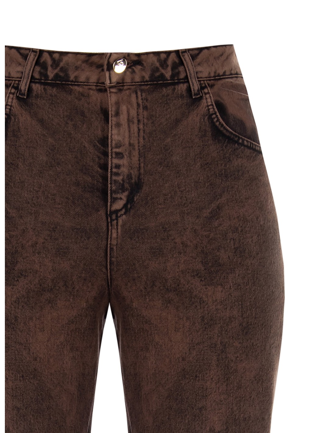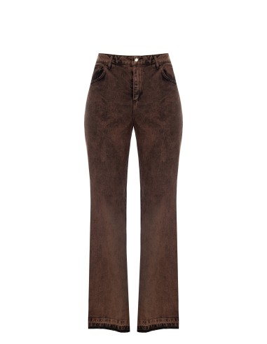 Calças de perna larga e cintura alta com um corte suave que emagrece a silhueta curvilínea. Ganga macia com ligeira elasticidade e acabamento desgastado para conforto e movimento. Pormenores: logótipo metálico na parte de trás e fecho de botões. Perfeitas do escritório para o fim de semana, fáceis de combinar com blazer ou sapatilhas.