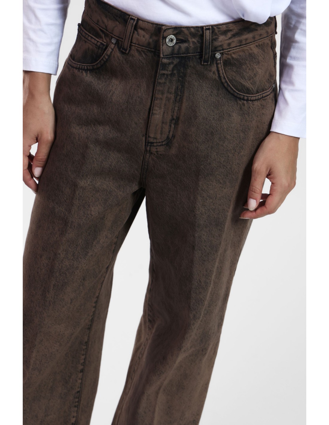 Explore o conforto com estas calças de ganga de perna larga com detalhes atenciosos. Com uma cintura alta que favorece a silhueta, estas calças de ganga são ideais para todas as ocasiões. Imagine usá-las com os seus tops preferidos para um look descontraído mas elegante. Cada detalhe foi concebido para que se sinta especial todos os dias.