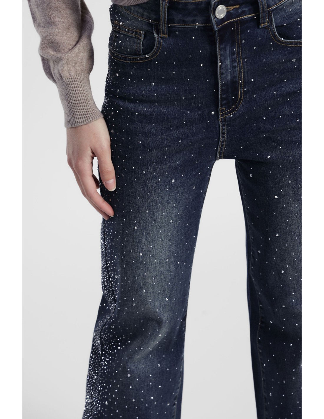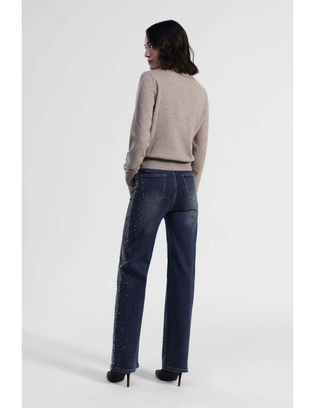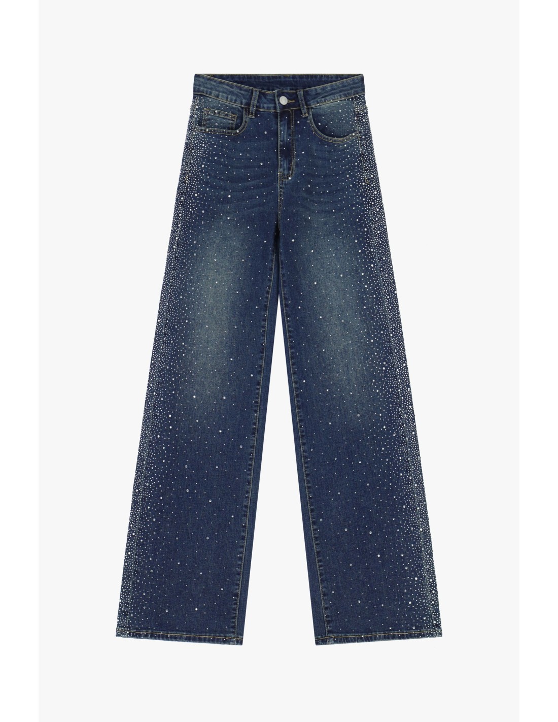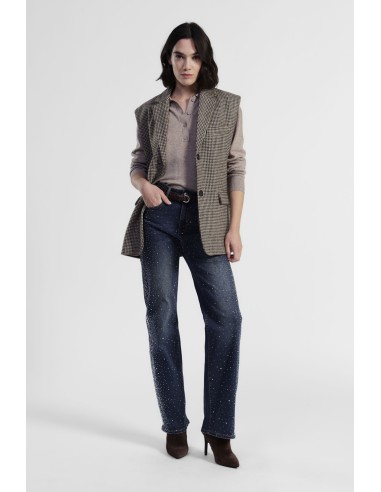 Gangas de perna larga com um corte descontraído, enriquecidas por uma chuva de apliques brilhantes em toda a superfície. O design realça a silhueta e dá um toque original ao quotidiano, perfeito para combinar com uma camisa clássica ou uma simples t-shirt para se destacar com carácter.