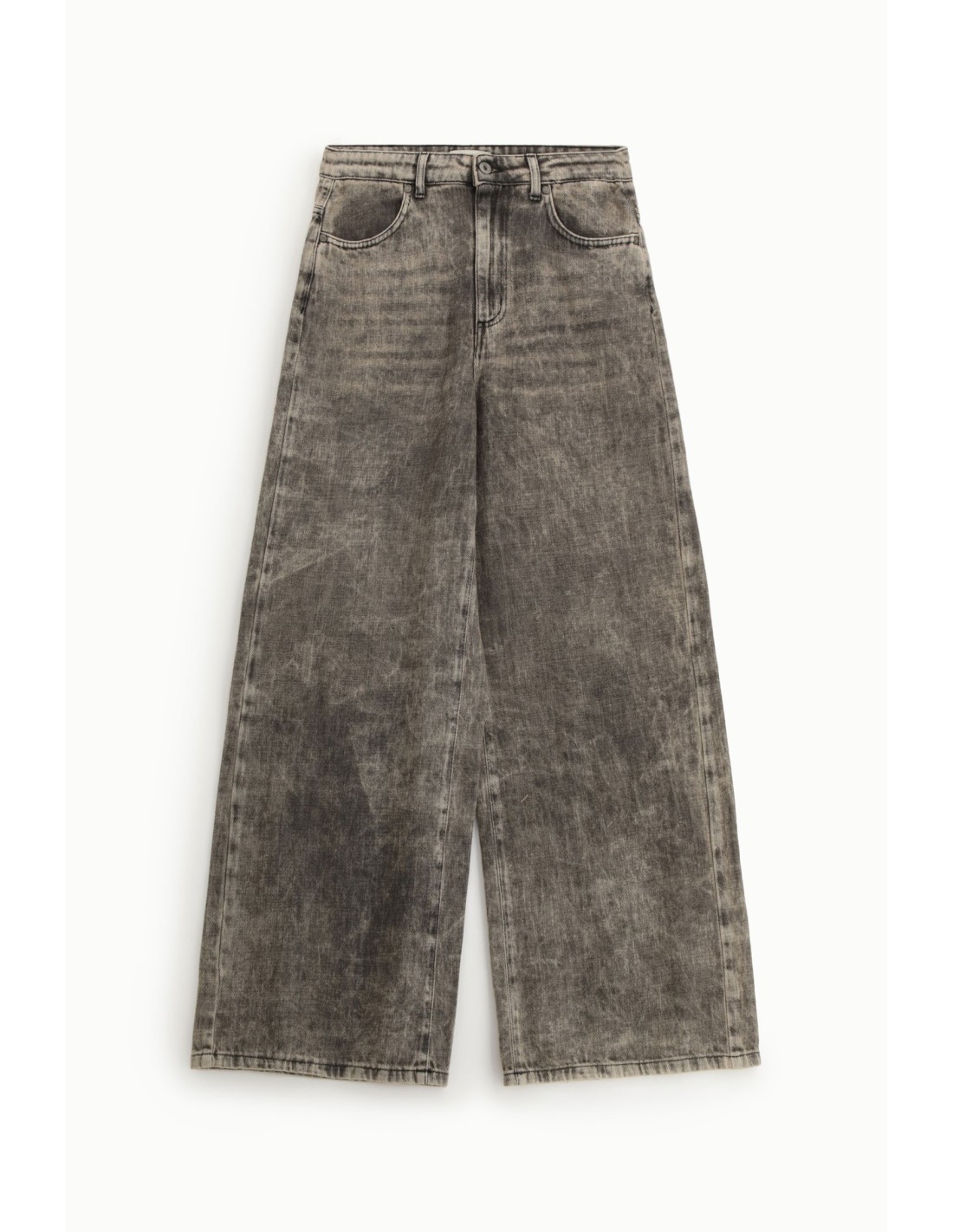 Deixe-se surpreender por estas calças de ganga de perna larga com um corte descontraído e cintura alta. O tratamento lavado confere-lhes um carácter forte e original, perfeito para combinar tanto com t-shirts casuais como com blusas femininas. Linhas suaves que valorizam cada look e permitem liberdade de movimentos, ideais para o quotidiano.
