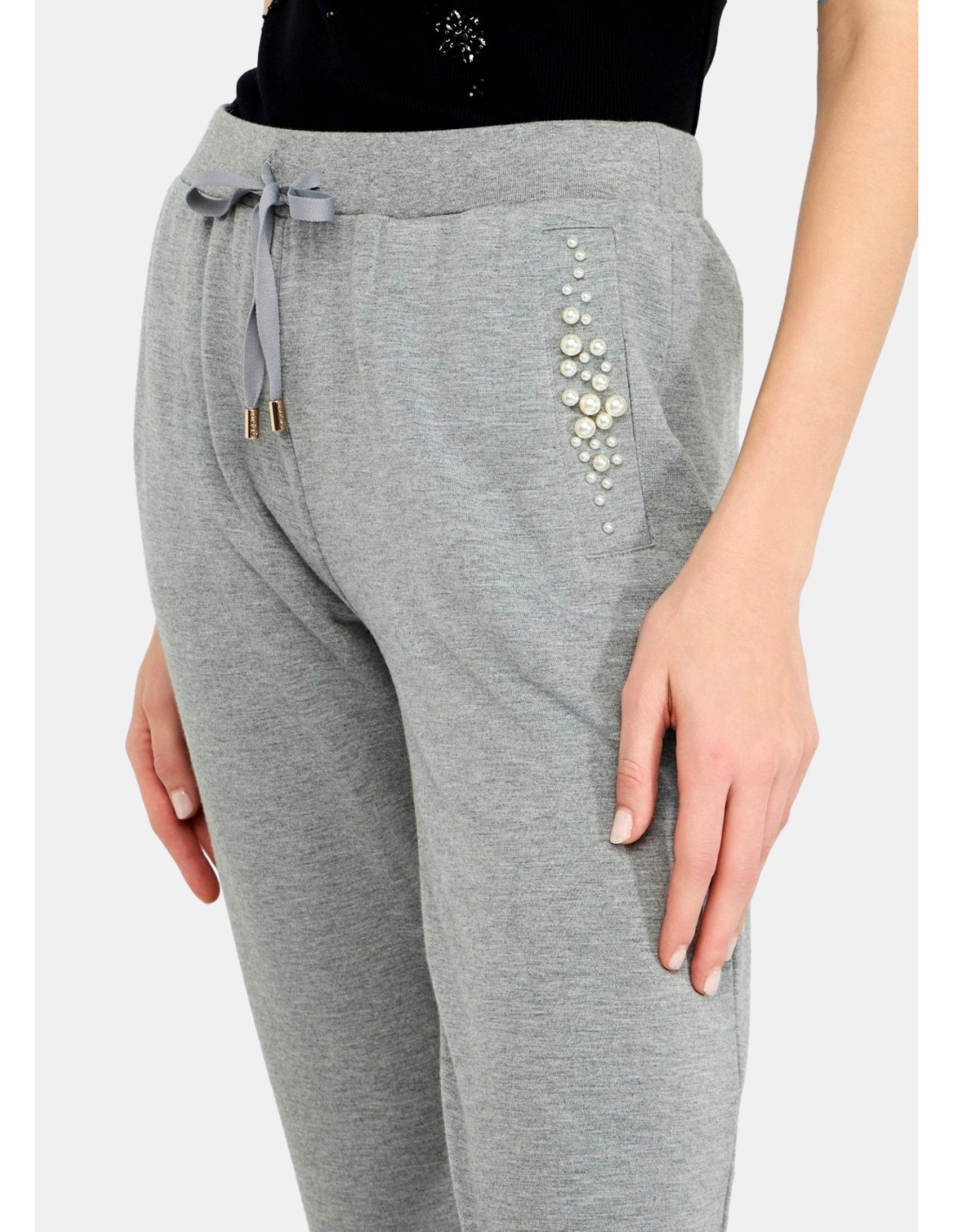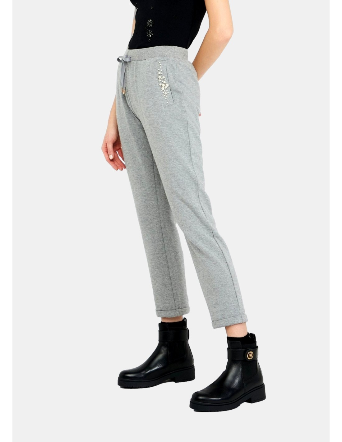 Calças de jogging em mistura de viscose elástica, cintura elástica com cordão, bolsos nas ancas, bainha virada para cima, ecológicas.