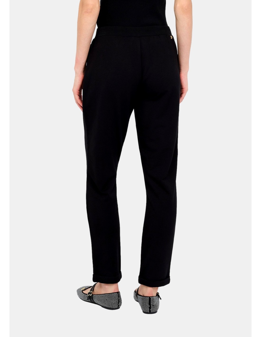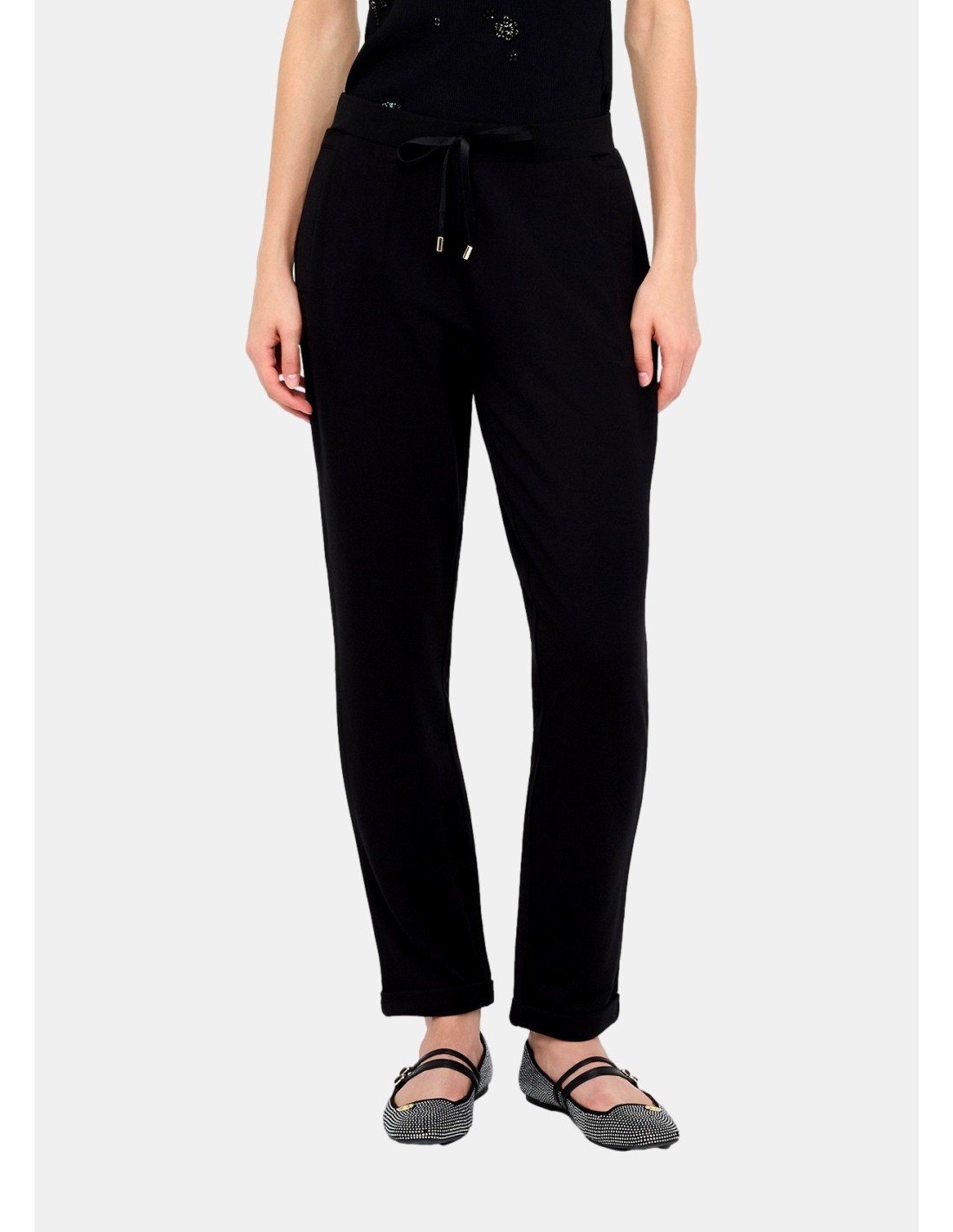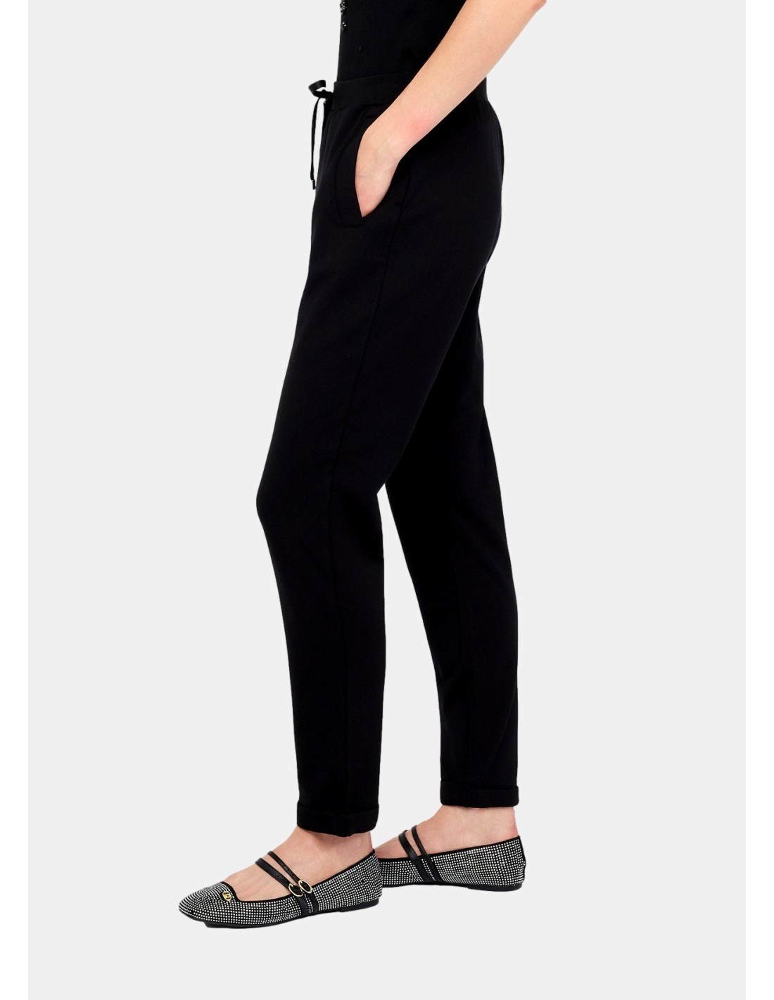 Calças de jogging em mistura de viscose elástica, cintura elástica com cordão, bolsos nas ancas, bainha virada para cima, ecológicas.