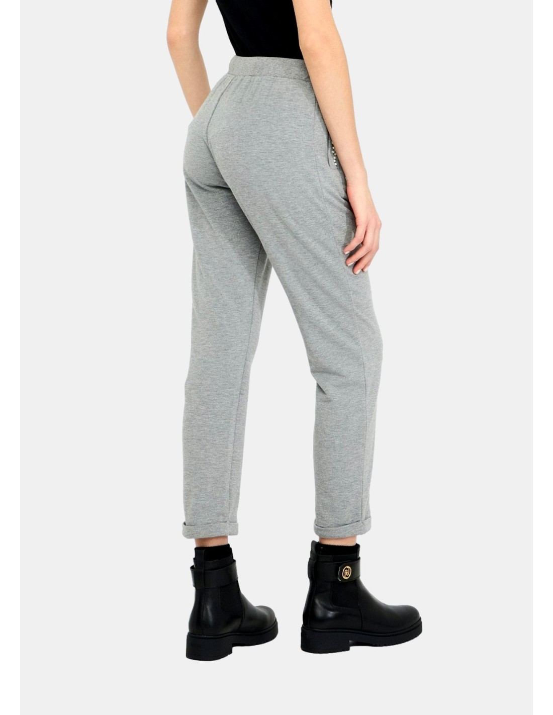 Calças de jogging em mistura de viscose elástica, cintura elástica com cordão, bolsos nas ancas, bainha virada para cima, ecológicas.