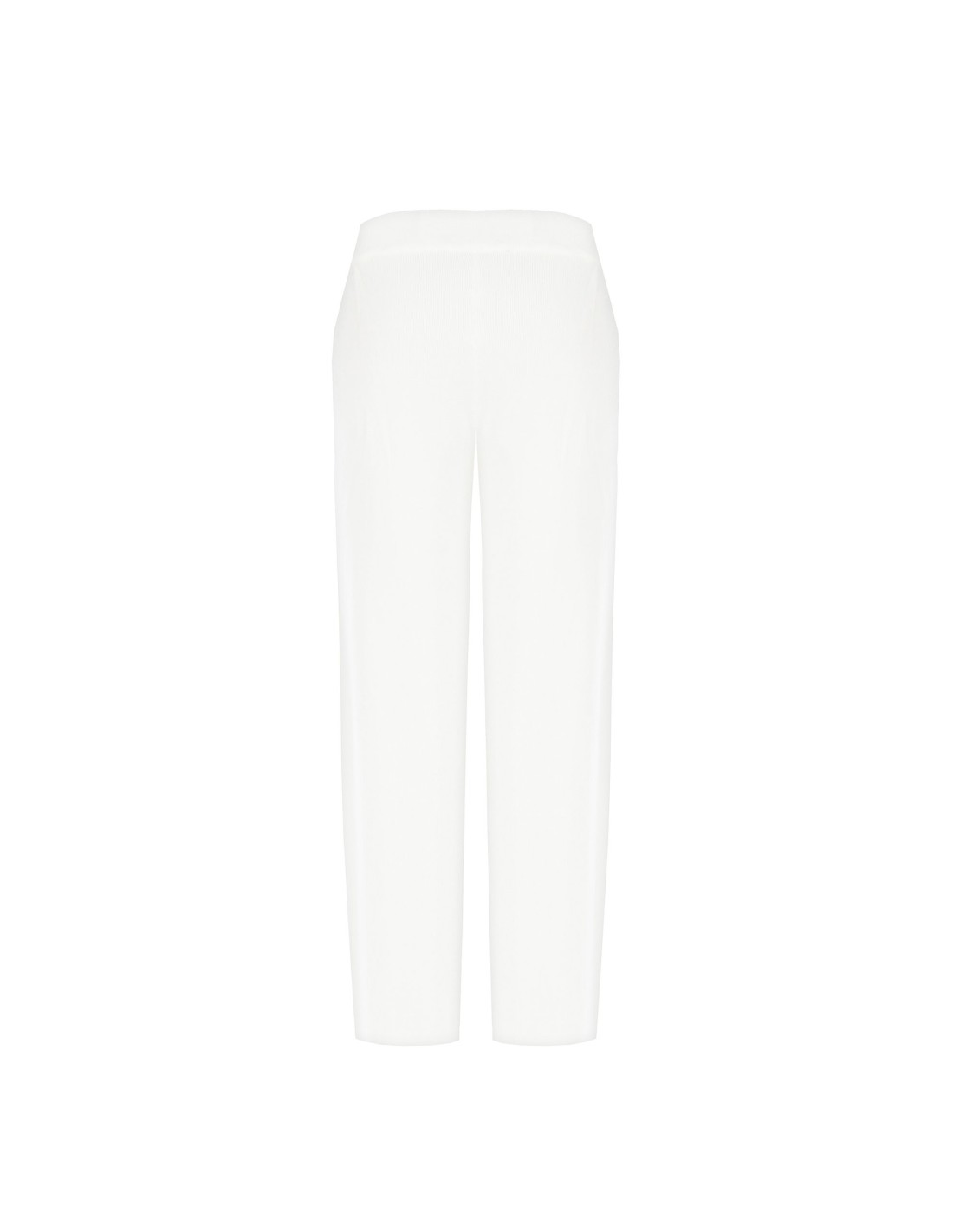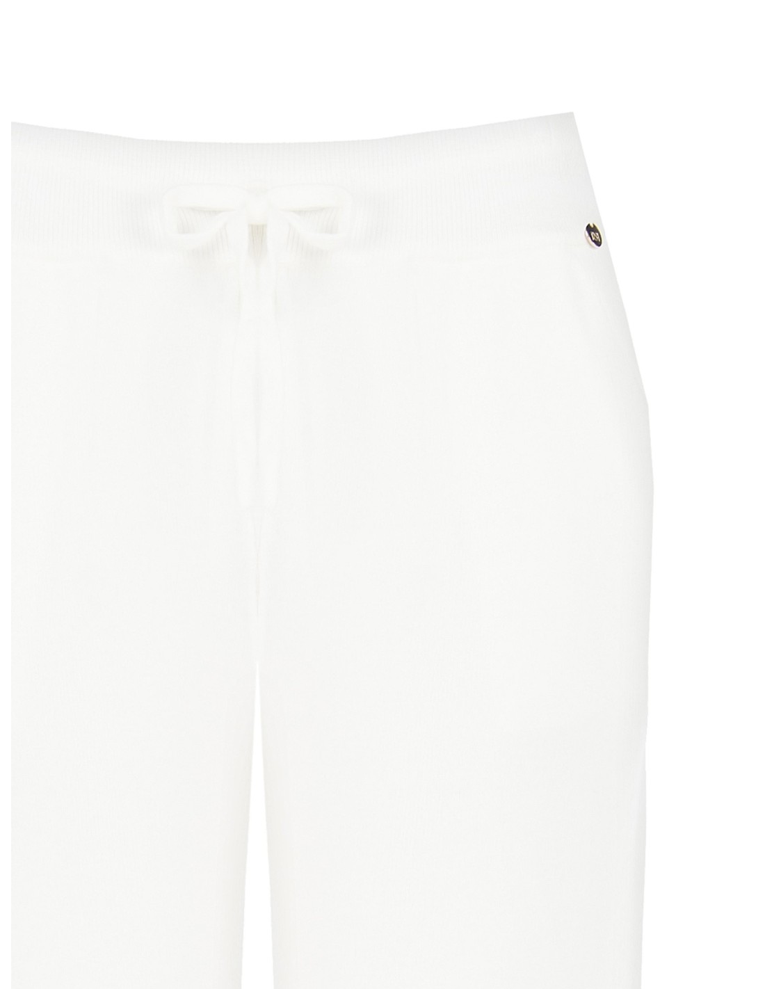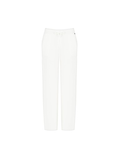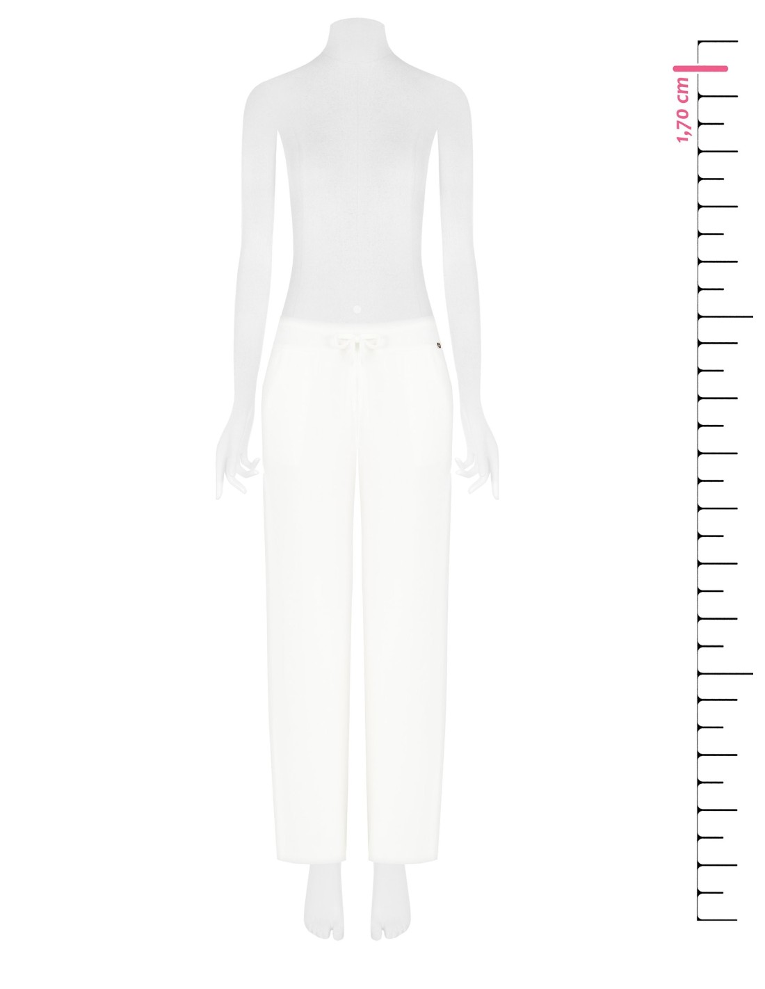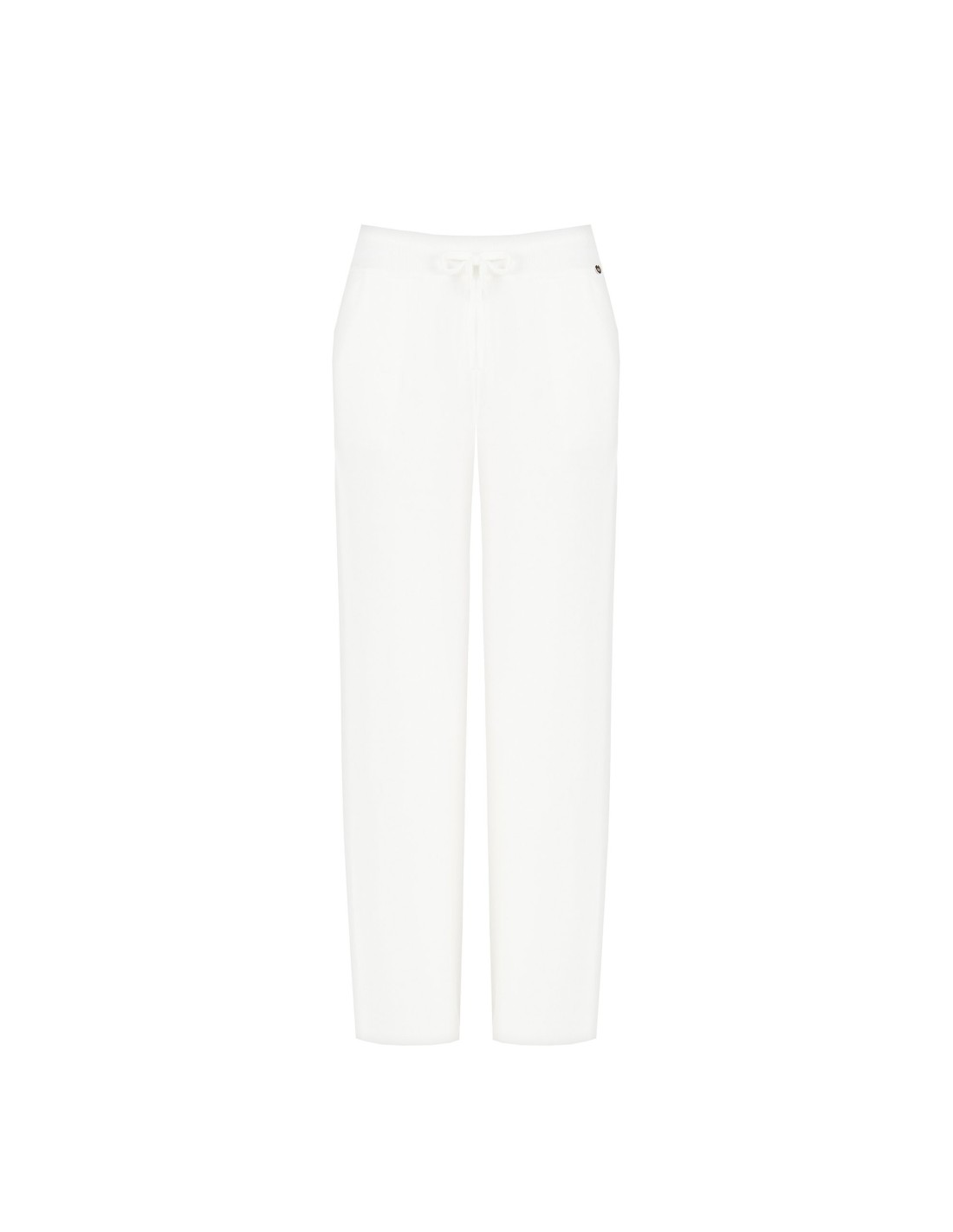 Calças largas com um corte suave e direito que emagrece a figura. Malha compacta e leve, agradável para a pele. Cintura elástica com cordão para um ajuste perfeito, placa de logótipo discreta. Ideal desde a secretária até ao fim de semana: conforto requintado para o escritório, viagens e dia a dia.
