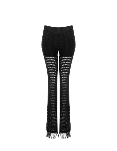 Calças de gola alta em malha perfurada e borlas com calções integrados