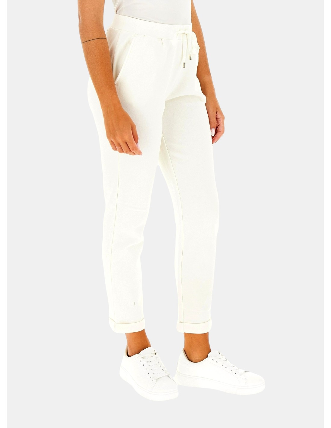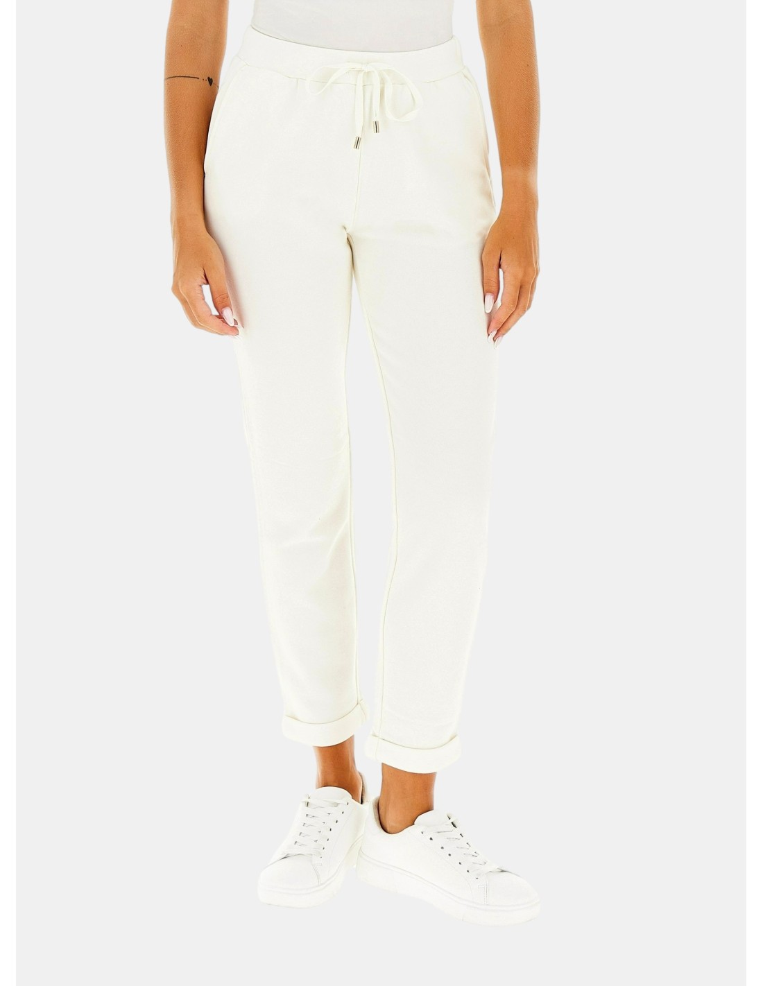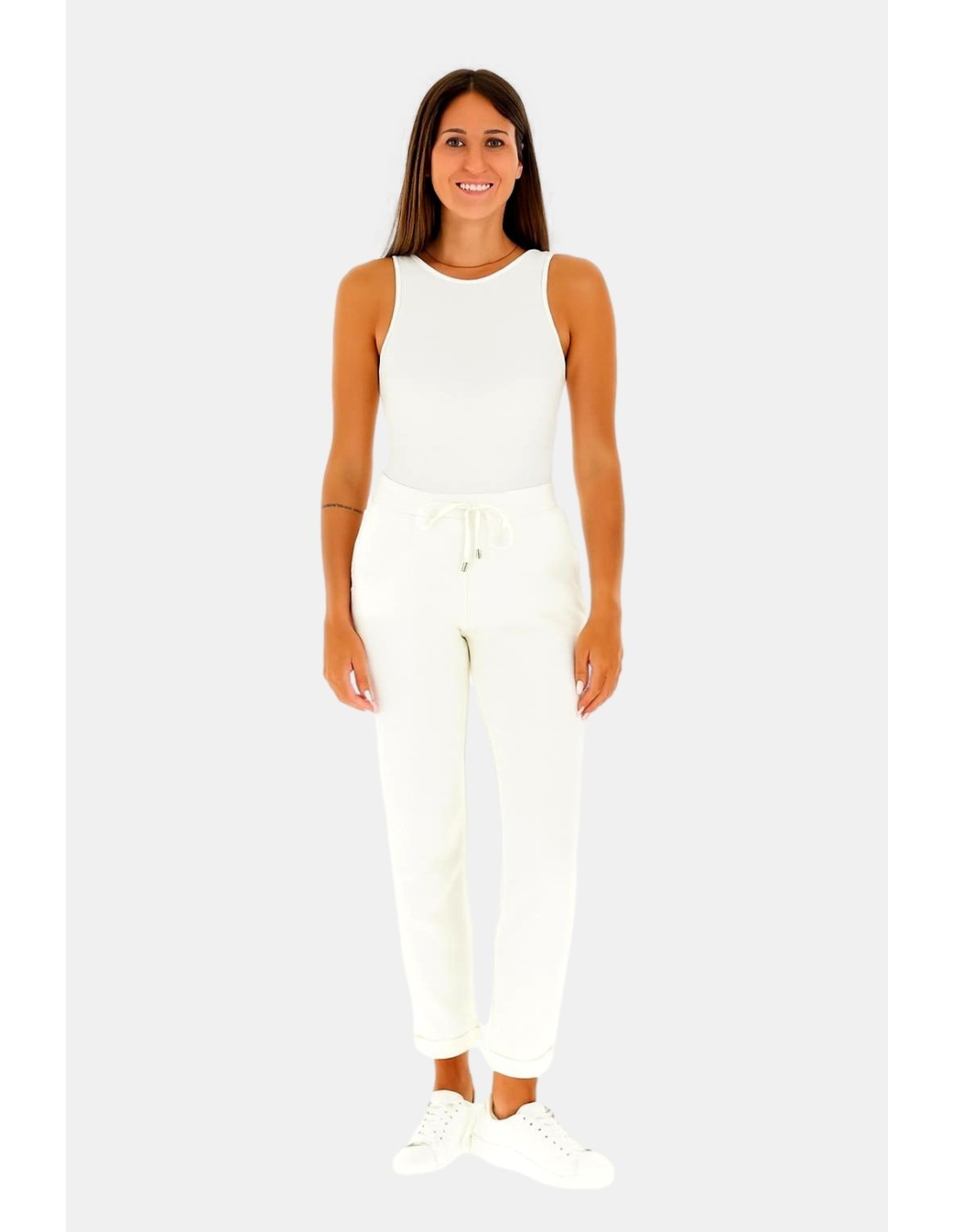 Calças de corrida em mistura de algodão, cintura com cordão elástico, bolsos nas ancas, logótipo em metal.