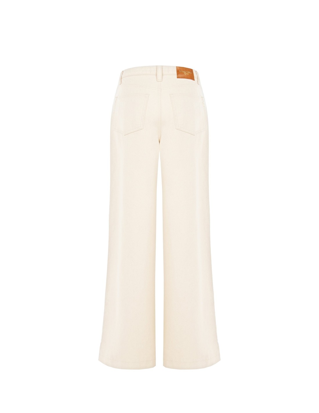 Calças de perna larga, cintura regular, silhueta fluida que alonga. Confeccionadas em drill de algodão com um toque compacto e confortável. Detalhes distintivos: botão com logótipo RR e patch na parte de trás. Perfeitas do escritório ao aperitivo, combinam-se com facilidade para um visual diário cuidado.
