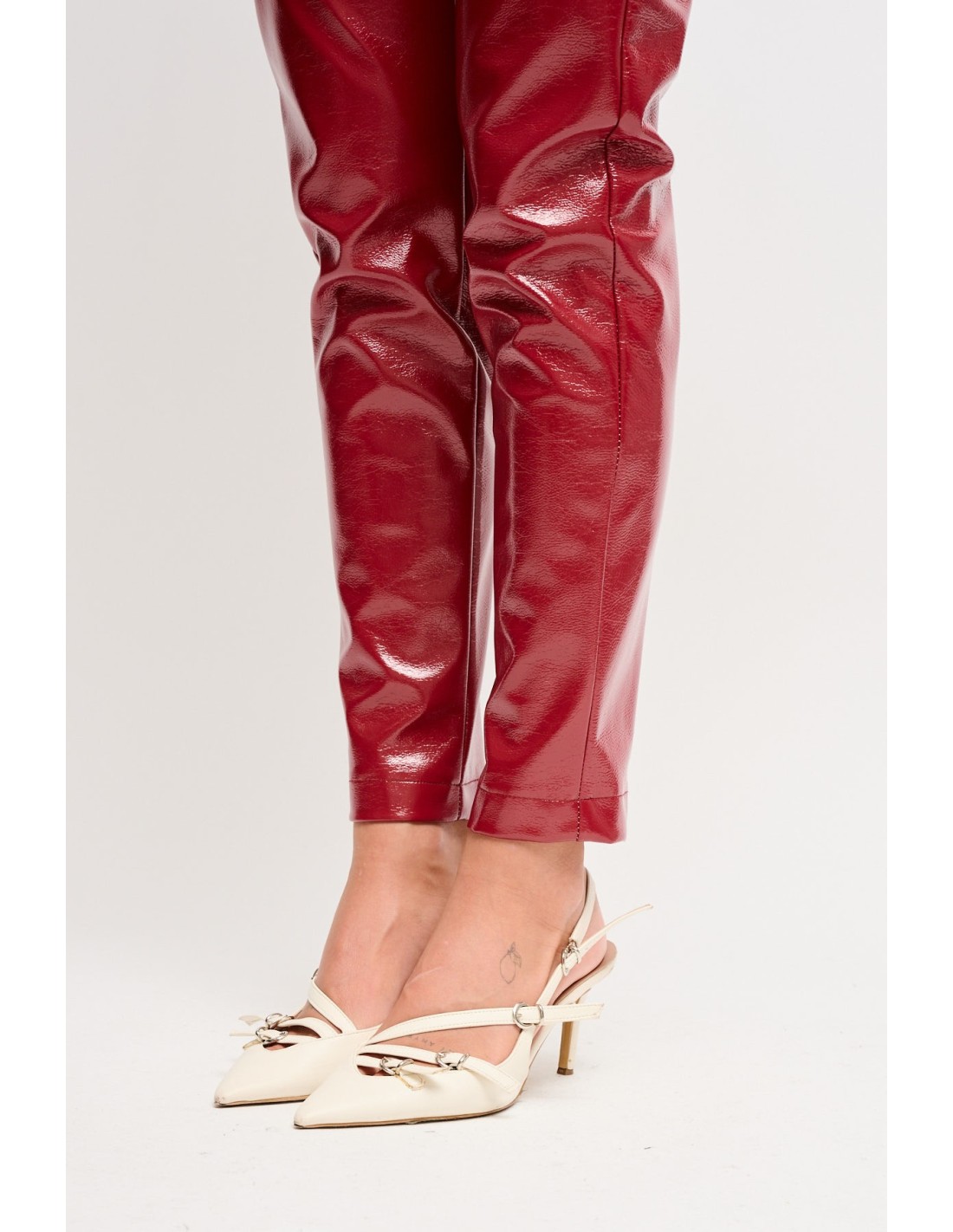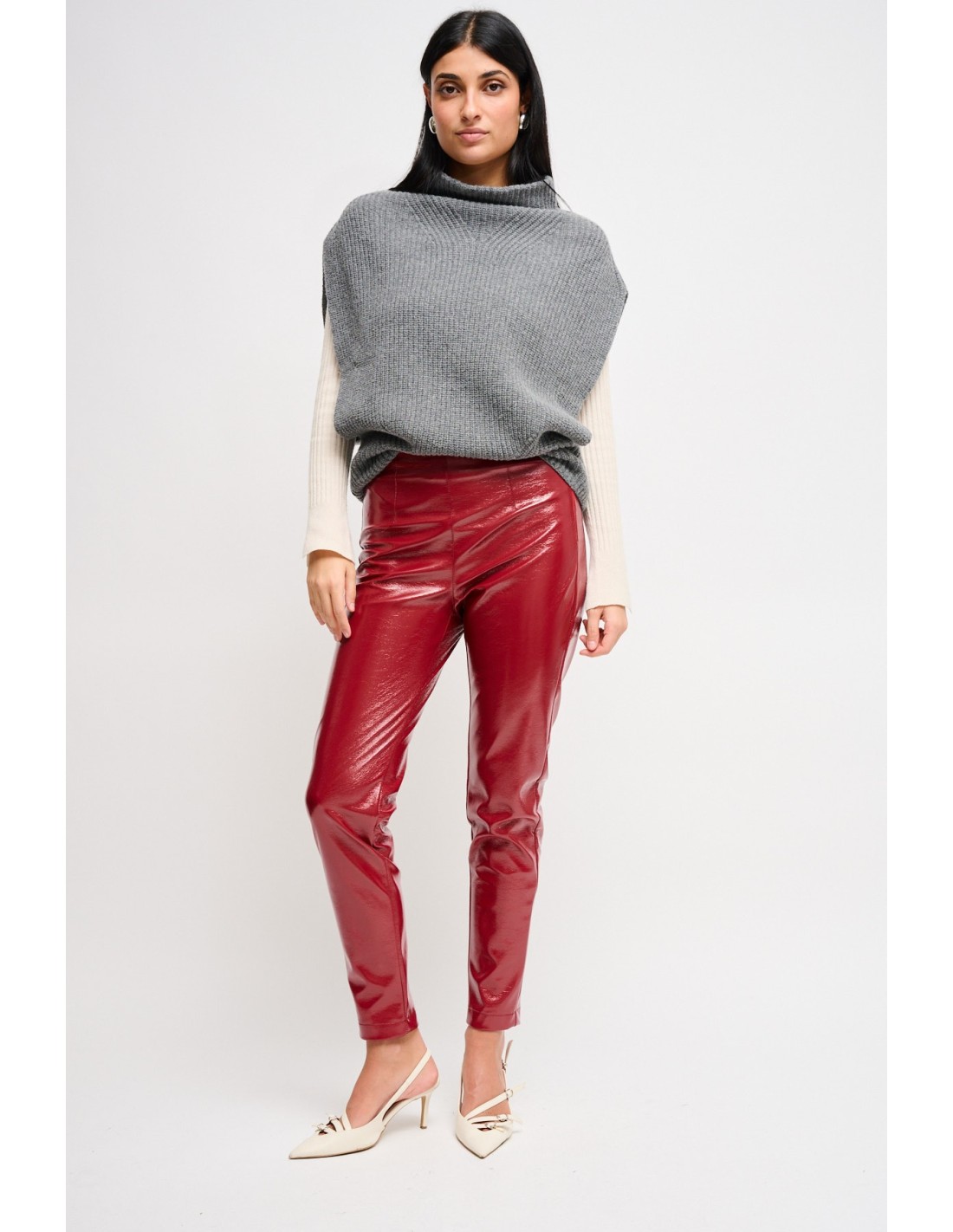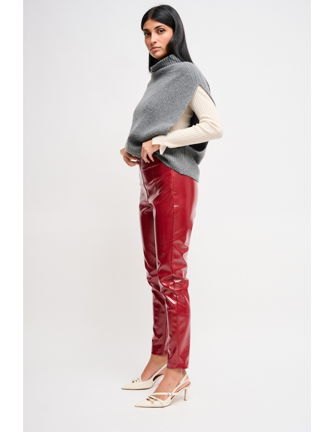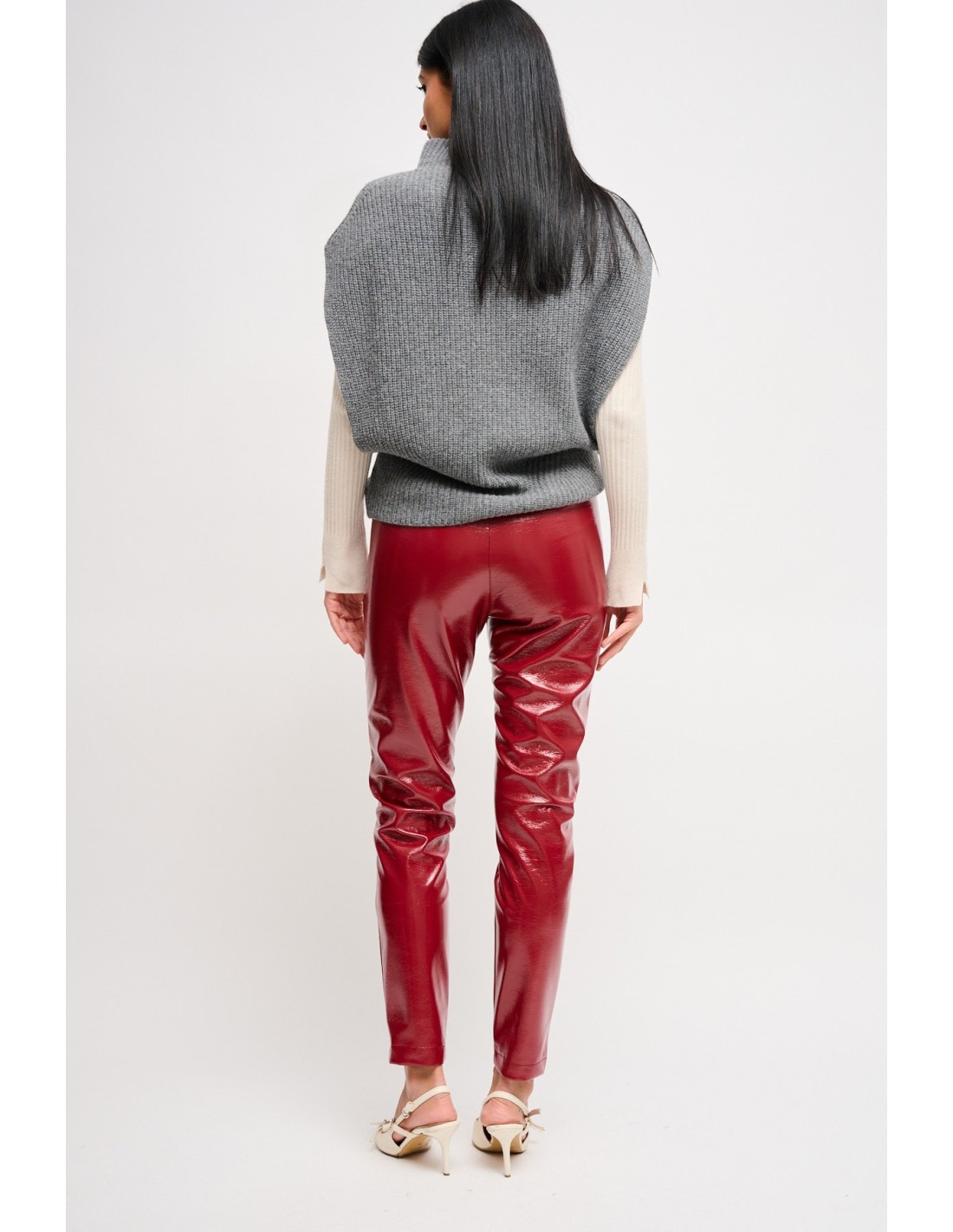 Maryley assina umas calças de cintura alta com corte slim que modelam sem apertar. O vinil brilhante envolve a silhueta com efeito segunda pele. Fecho lateral invisível e corte ao tornozelo para alongar. Perfeitas para a noite ou para festas, combinadas com malhas macias ou blazers para um look decidido e versátil.