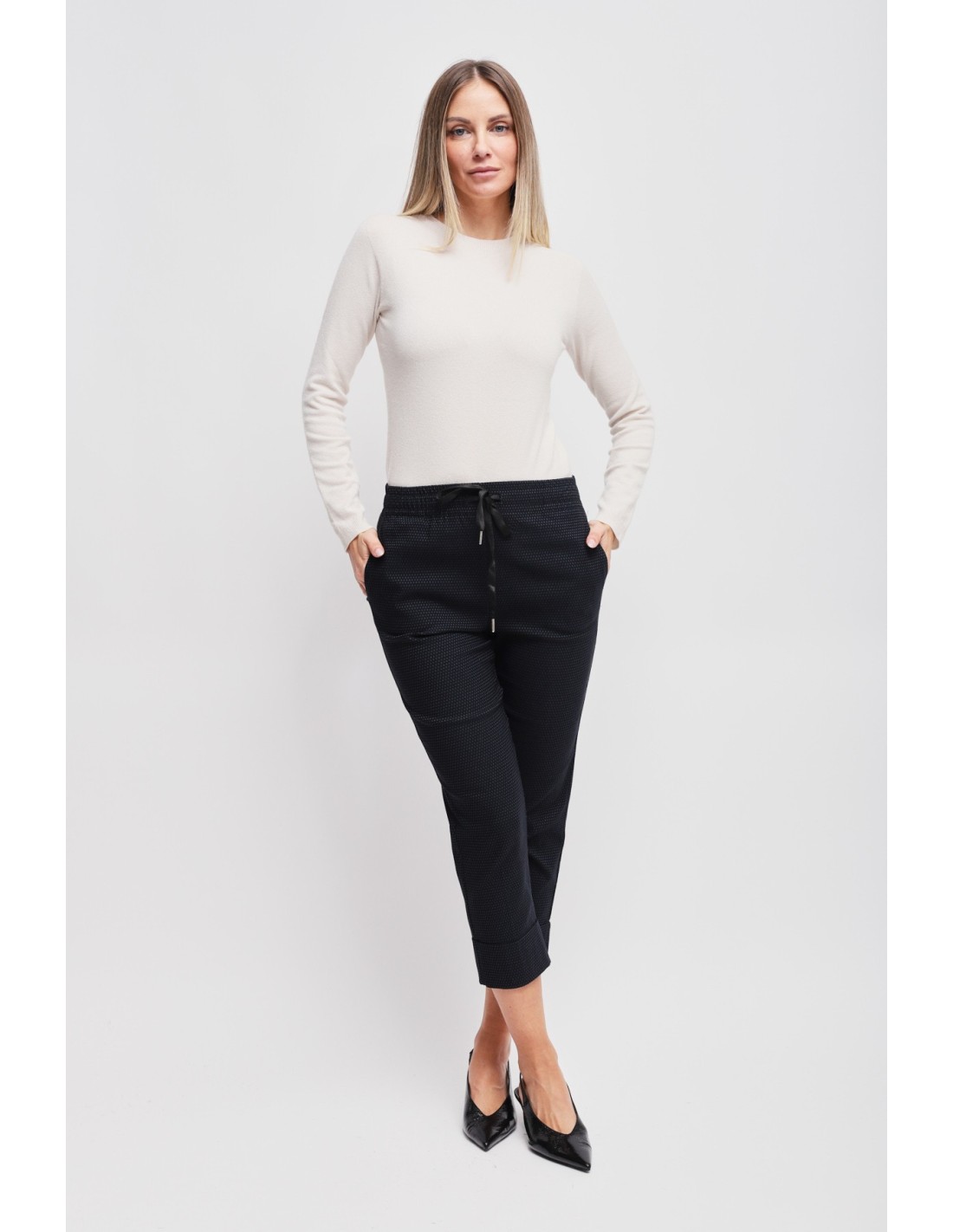 Maryley assina um modelo descontraído com um corte suave que alonga a perna. Tecido jacquard ligeiramente estruturado para conforto e sustentação, cintura elástica com cordão de cetim e bainha com dobra. Bolsos laterais. Perfeitas do escritório ao aperitivo: versáteis, fáceis de combinar, desenham uma silhueta limpa e contemporânea.