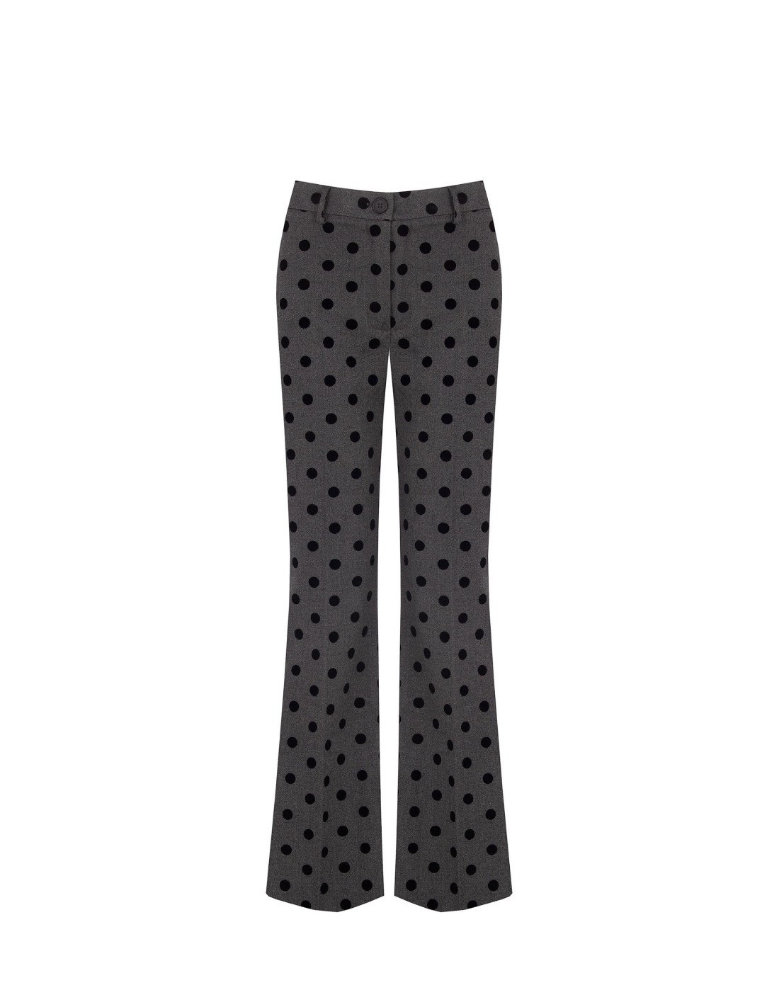 Calças flare com poá flocado e elástico atrás Rinascimento