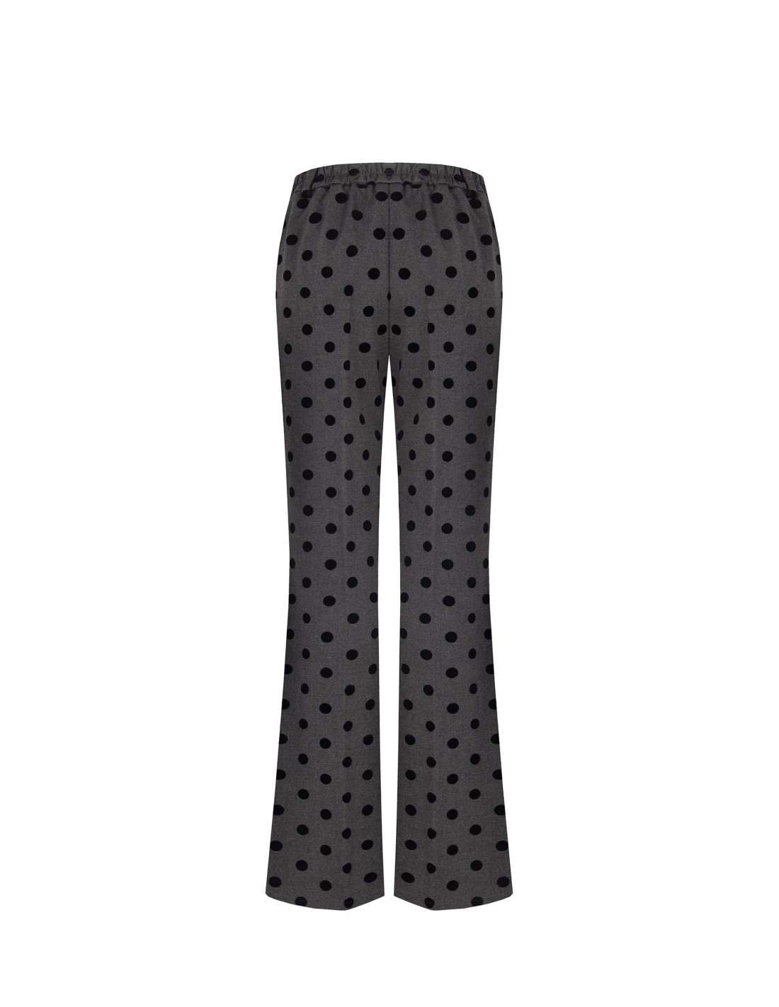 Calças flare às bolinhas flocadas com elástico na parte de trás Rinascimento