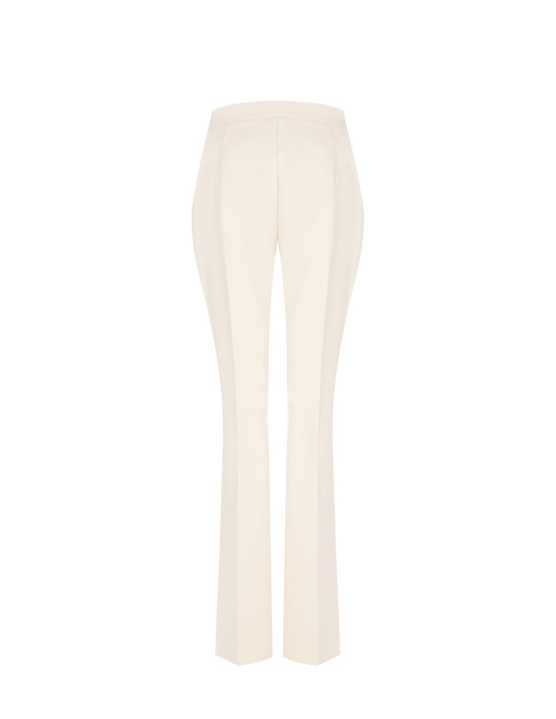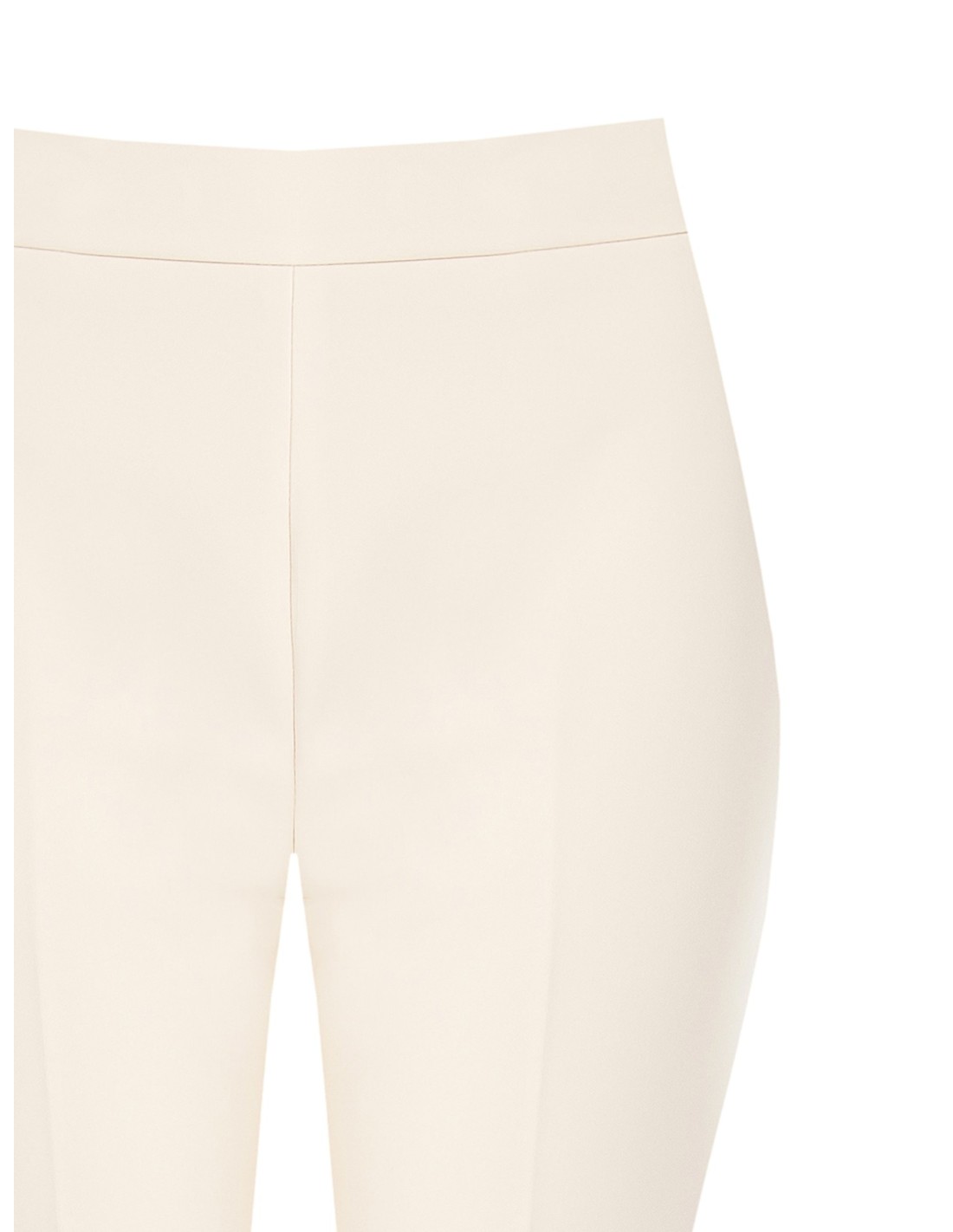 Corte flare de cintura alta, ajustado nos quadris e suave na barra, para uma silhueta esguia com conforto que acompanha os movimentos. Em tecido técnico com toque compacto e liso, com cintura limpa e corte essencial. Perfeita do escritório ao aperitivo.