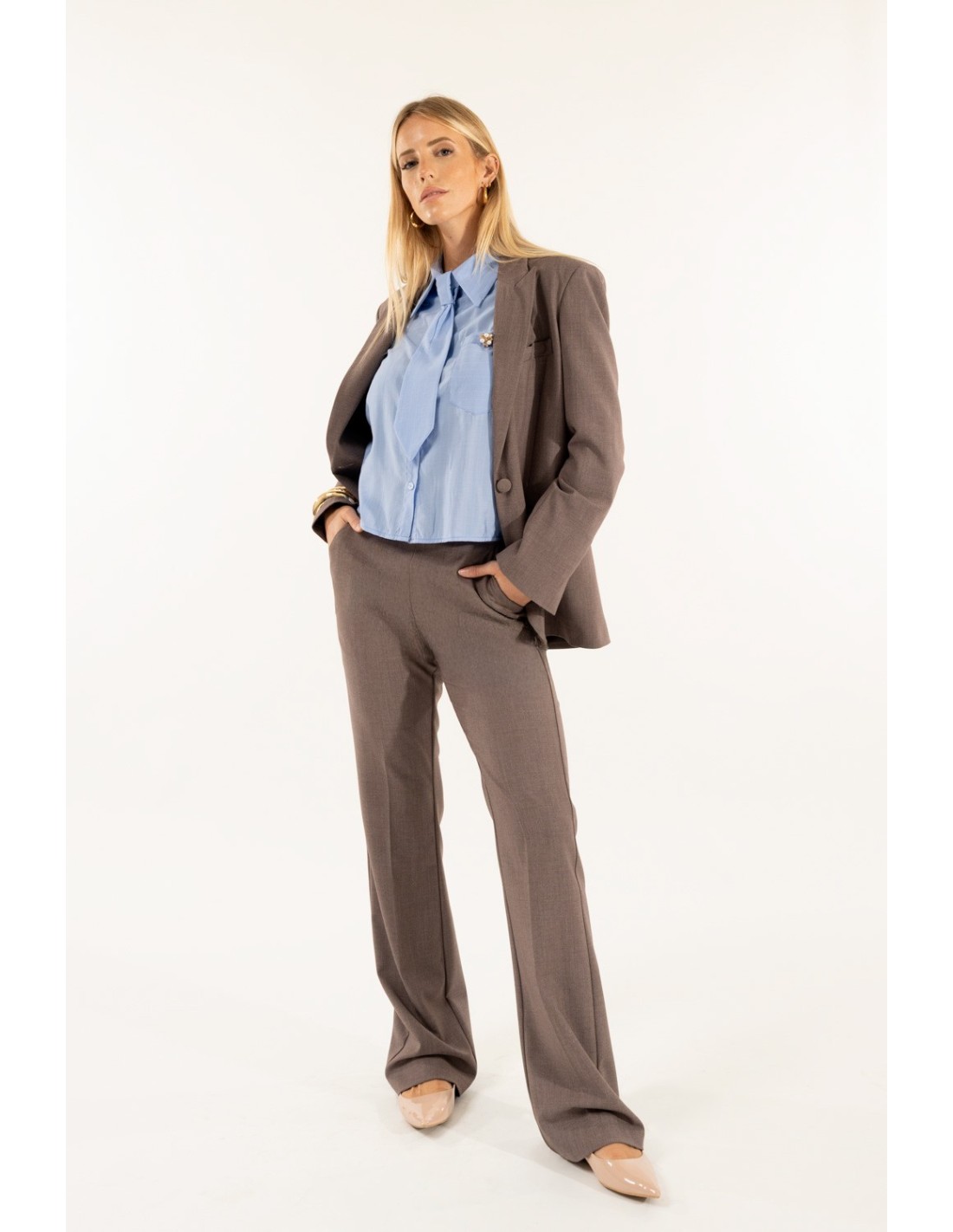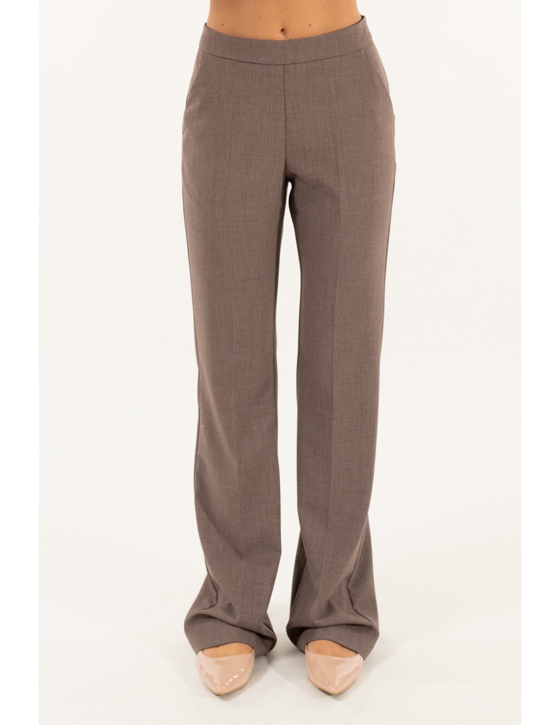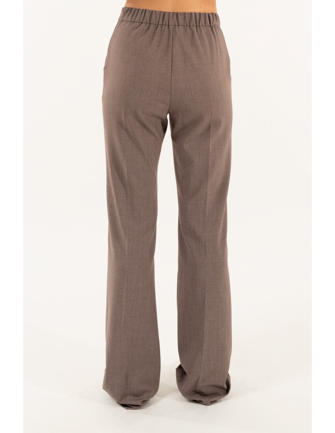 Kontatto assina uma calça de perna direita com um ajuste suave e cintura regular, que emagrece a silhueta sem apertar. Tecido fluido com uma mão ligeiramente elástica para um conforto quotidiano. Pormenores: elástico nas costas e prega à frente. Perfeitas para o escritório e para looks quotidianos versáteis.