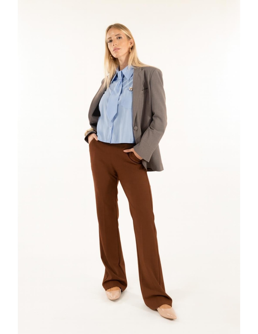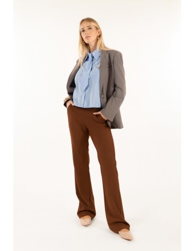 Kontatto assina uma calça de perna direita com um ajuste suave e cintura regular, que emagrece a silhueta sem apertar. Tecido fluido com uma mão ligeiramente elástica para um conforto quotidiano. Pormenores: elástico nas costas e prega à frente. Perfeitas para o escritório e para looks quotidianos versáteis.