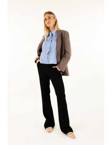 Kontatto assina uma calça de perna direita com um ajuste suave e cintura regular, que emagrece a silhueta sem apertar. Tecido fluido com uma mão ligeiramente elástica para um conforto quotidiano. Pormenores: elástico nas costas e prega à frente. Perfeitas para o escritório e para looks quotidianos versáteis.