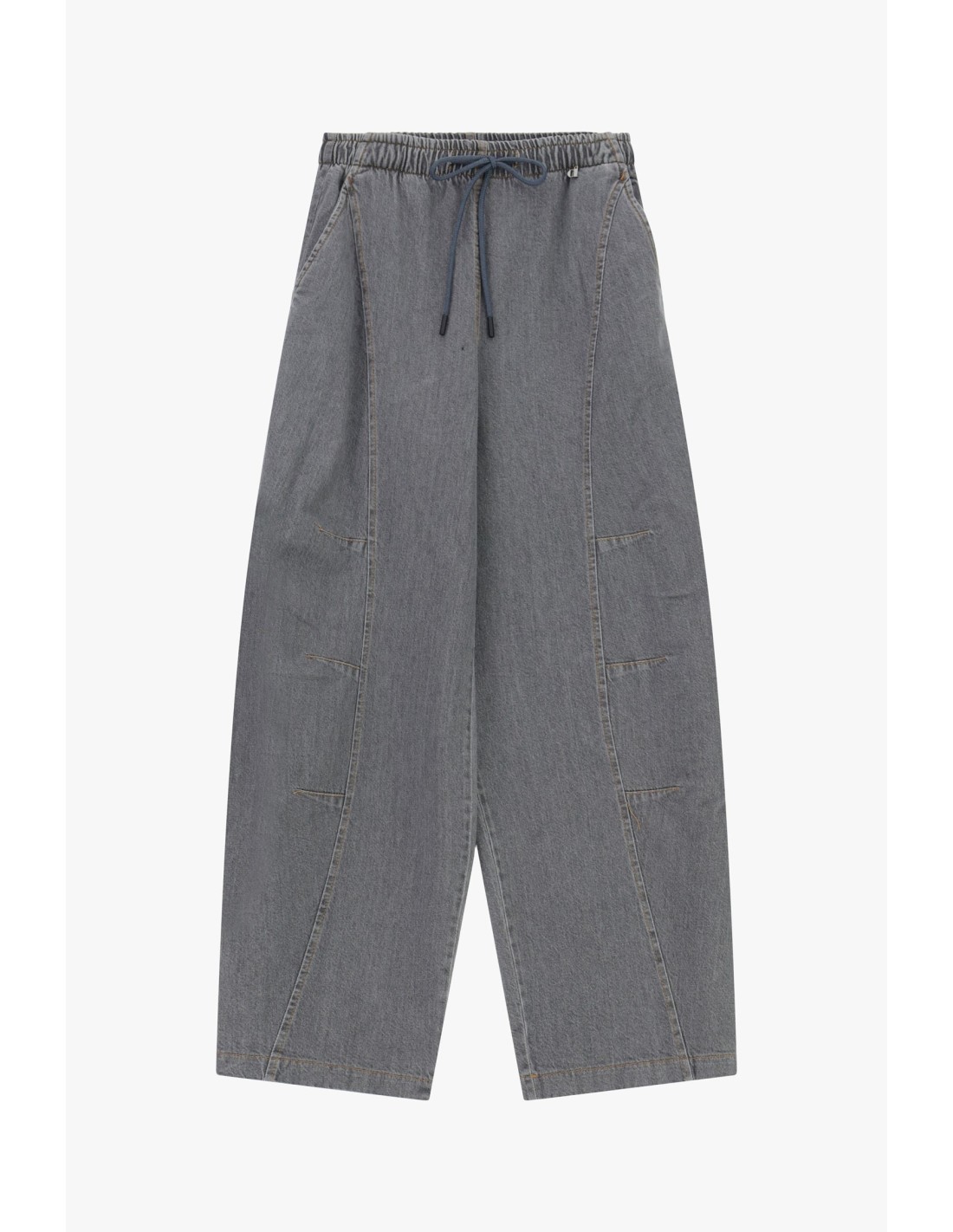 Estas calças palazzo de cintura alta apresentam um corte solto e descontraído, perfeitas para quem procura conforto e estilo todos os dias. A cintura ajustável com cordão proporciona um ajuste versátil, enquanto as costuras e os bolsos visíveis dão um toque distinto. Ideal para criar looks originais que refletem a personalidade e a atenção aos detalhes.