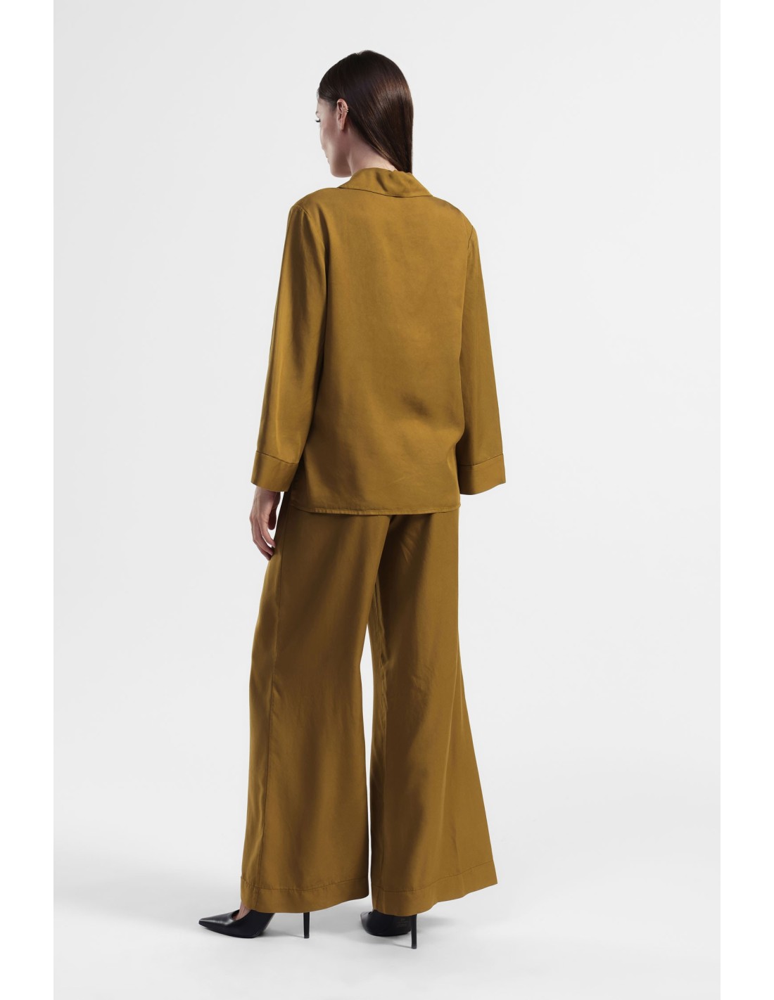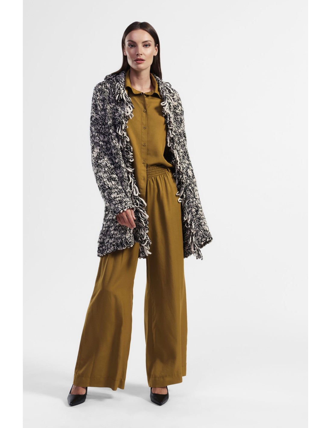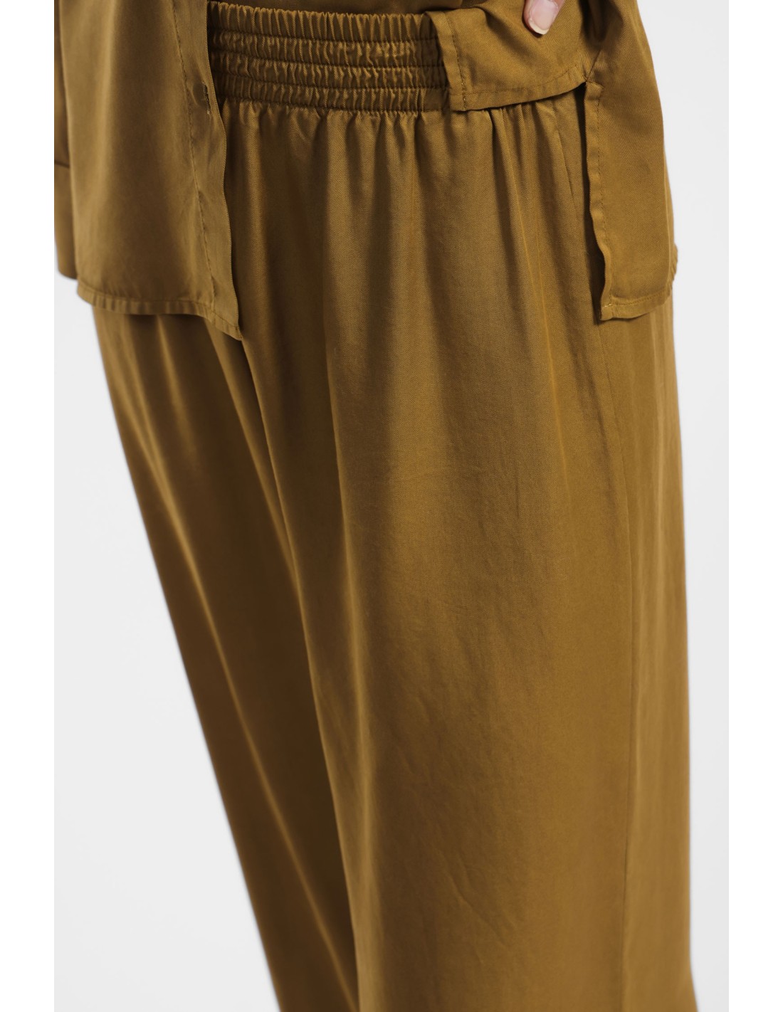 Estas calças largas oferecem um ajuste confortável graças à cintura elástica. A silhueta arejada e fluida garante um movimento elegante, perfeito para quem gosta de combinar originalidade e praticidade. Ideal para dias em que o conforto não tem de sacrificar o estilo, adaptando-se a múltiplas ocasiões com elegância.