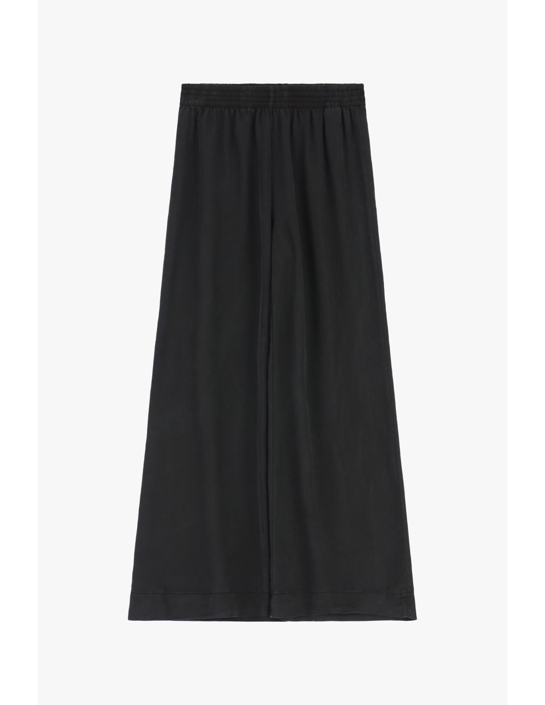 Estas calças largas oferecem um ajuste confortável graças à cintura elástica. A silhueta arejada e fluida garante um movimento elegante, perfeito para quem gosta de combinar originalidade e praticidade. Ideal para dias em que o conforto não tem de sacrificar o estilo, adaptando-se a múltiplas ocasiões com elegância.