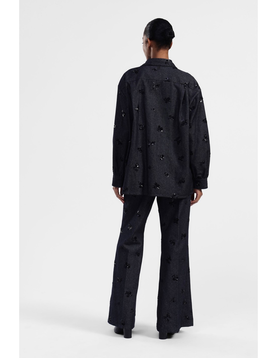 Reconecte-se com um toque elegante com estas calças boca de sino. O nosso design apresenta um estampado floral sofisticado, perfeito para ocasiões especiais. A cintura alta oferece conforto no dia a dia, enquanto o corte largo realça a silhueta. Imagine a elegância sem esforço que irá usar onde quer que vá.