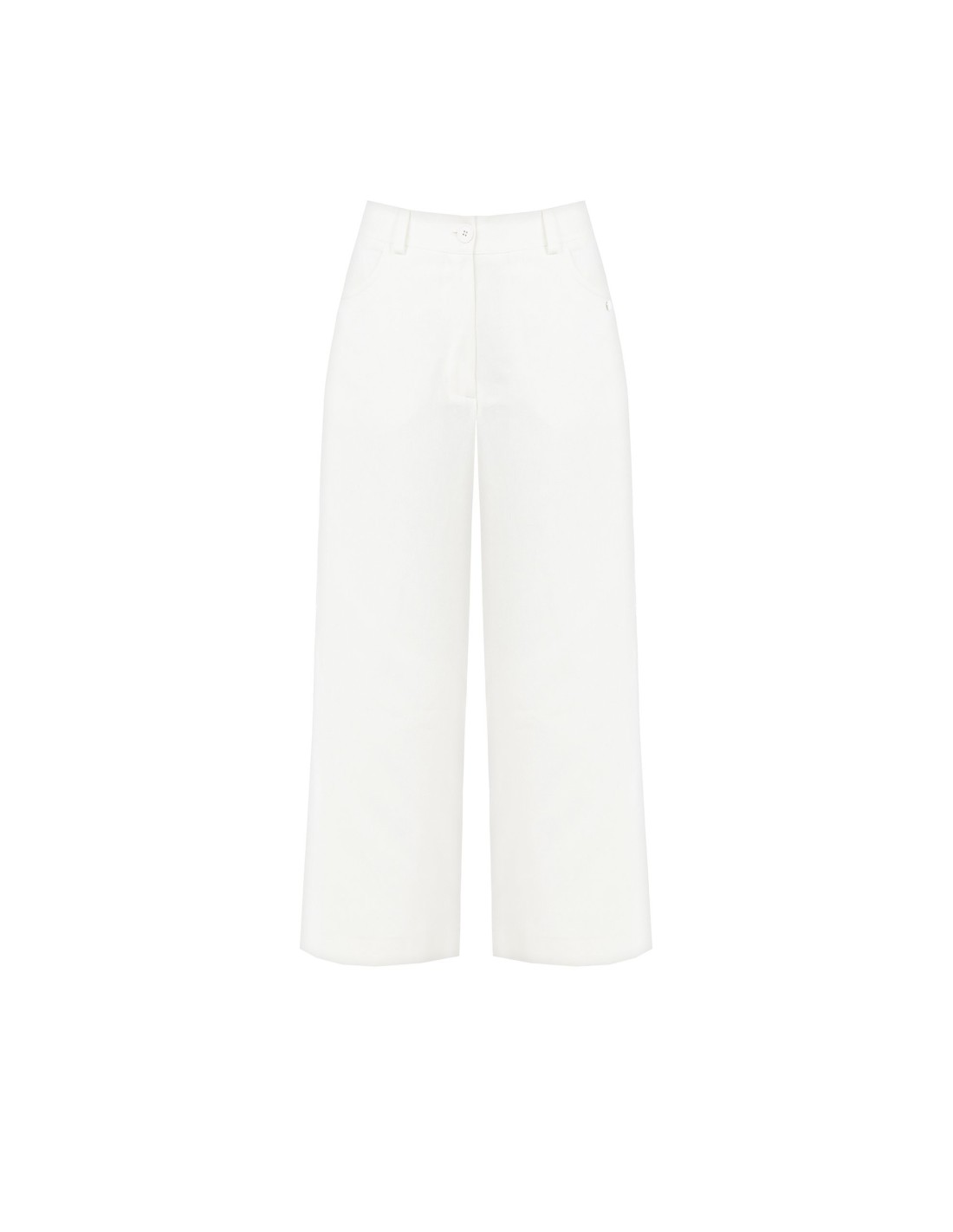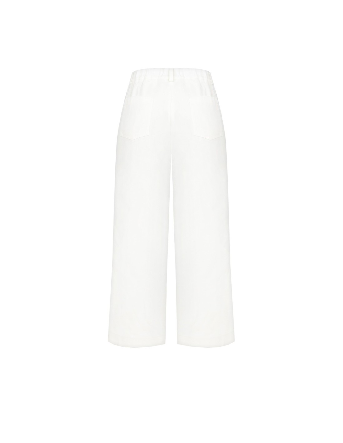 Calças Largas Cropped Em Ganga Com Elástico Atrás Rinascimento
