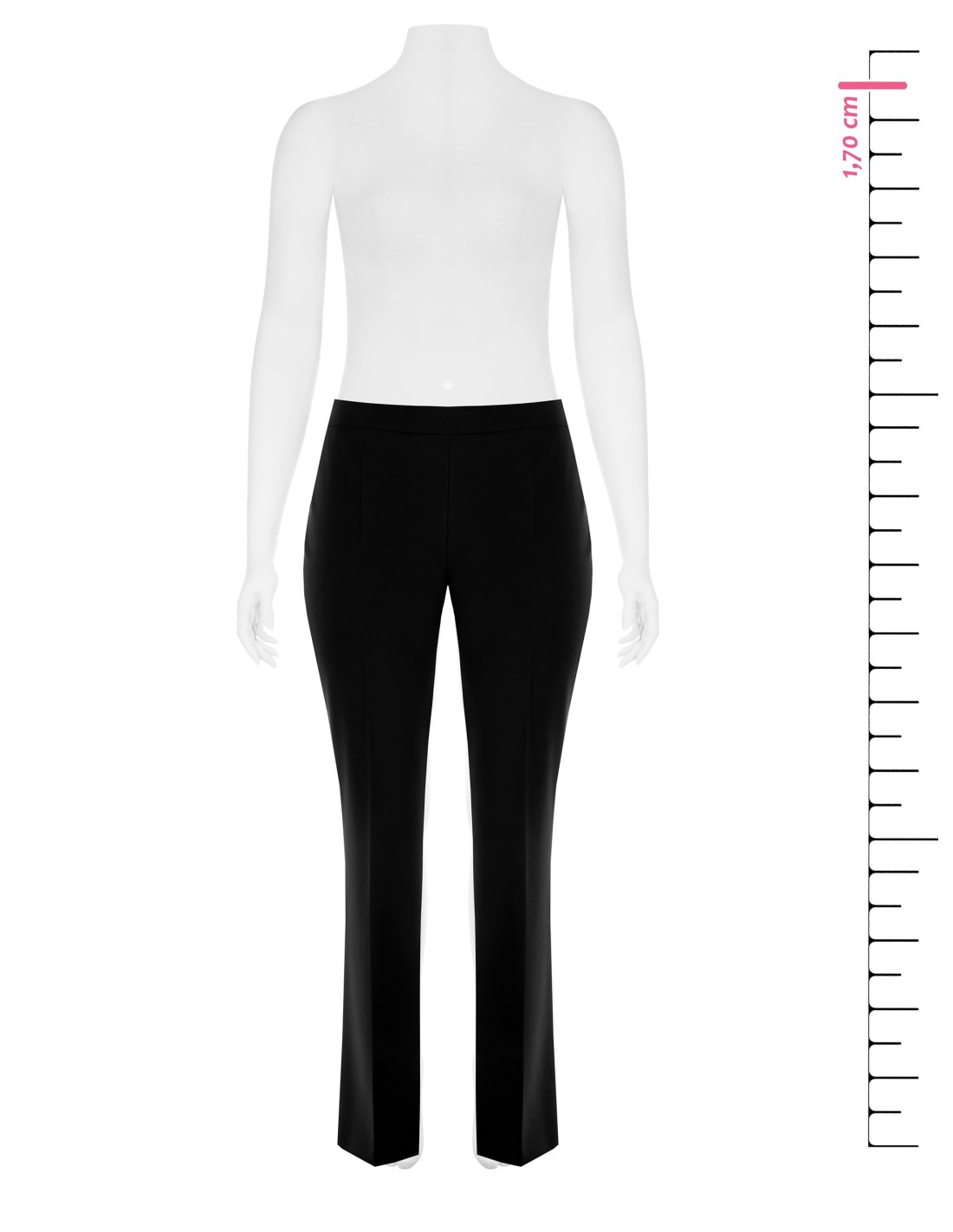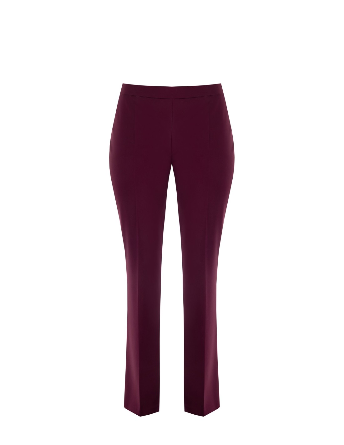 Rinascimento Curvy calça de sinalização com uma linha alargada que emagrece e define a cintura. Confeccionadas em tecido técnico elástico, envolvem com conforto e mantêm a sua forma. Cós limpo com fecho lateral invisível e prega engomada que adelgaça a perna. Perfeitas para o escritório e aperitivos, combinam bem com blazers ou blusas fluidas.