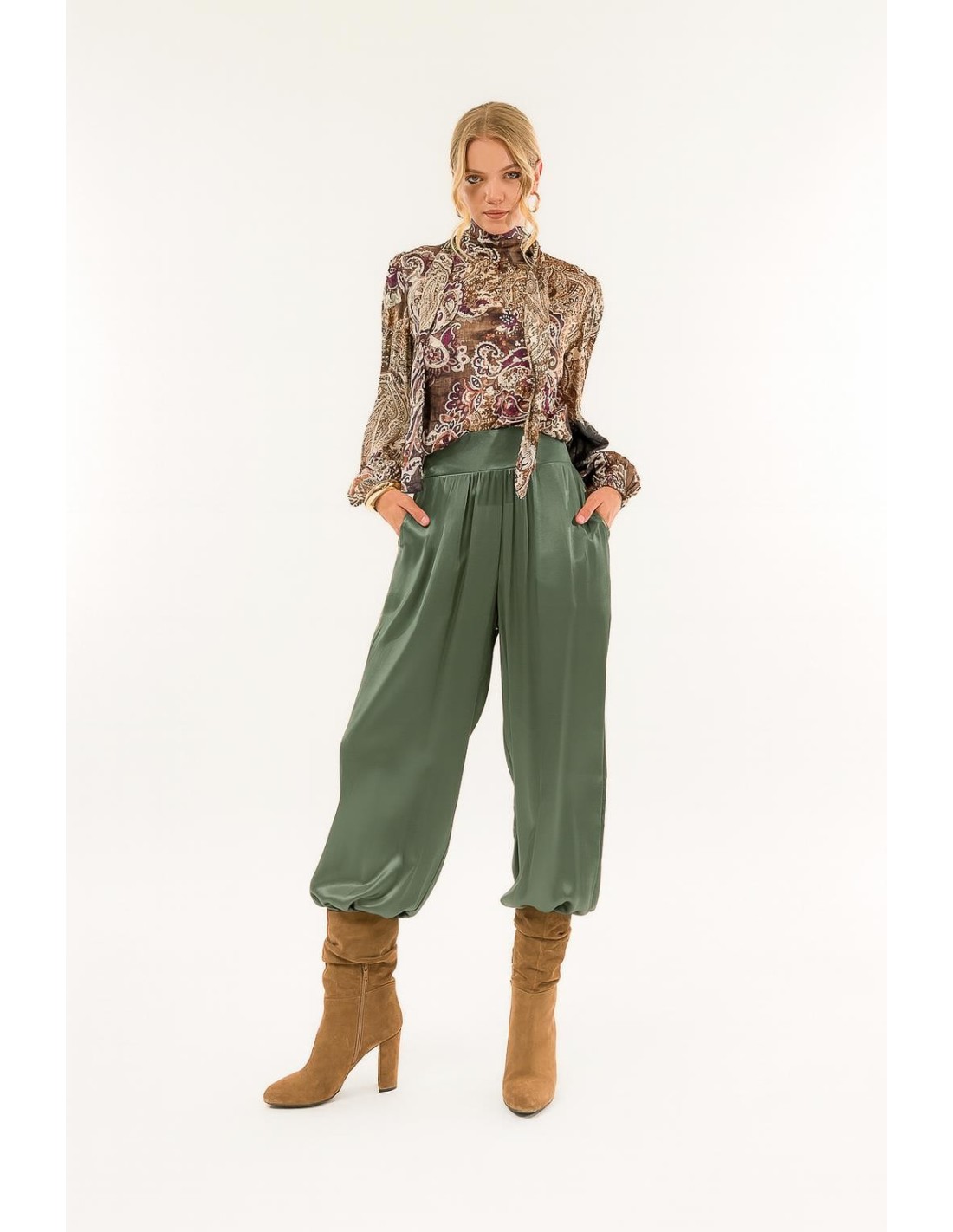 Linhas suaves e tecido fluido acariciam a silhueta com uma elegância sofisticada. Ideais para criar looks requintados e sofisticados, estas calças são um verdadeiro aliado de estilo para quem gosta de se destacar com classe e feminilidade.
