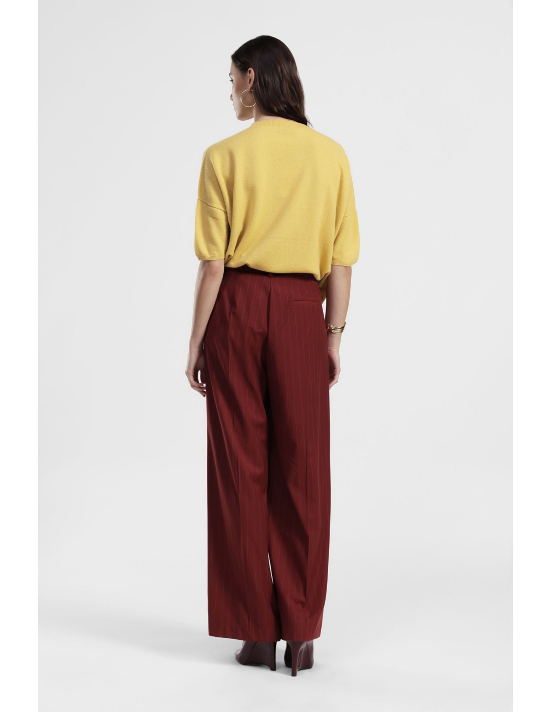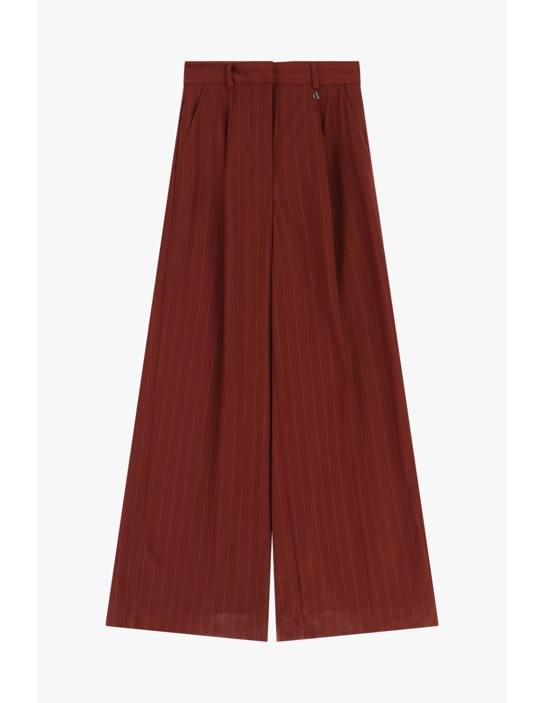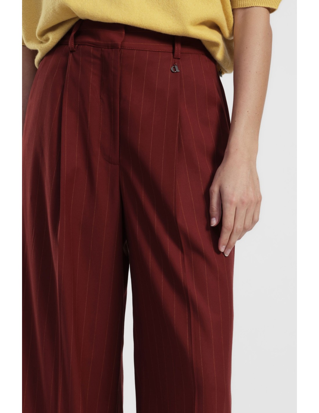 Calças palazzo às riscas com dardos e presilhas para o cinto
