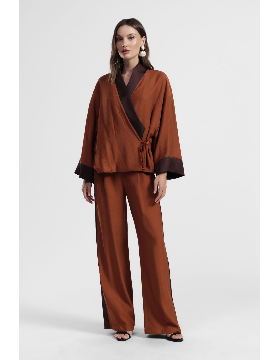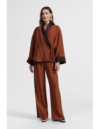 Calças palazzo de cintura subida com fitas laterais