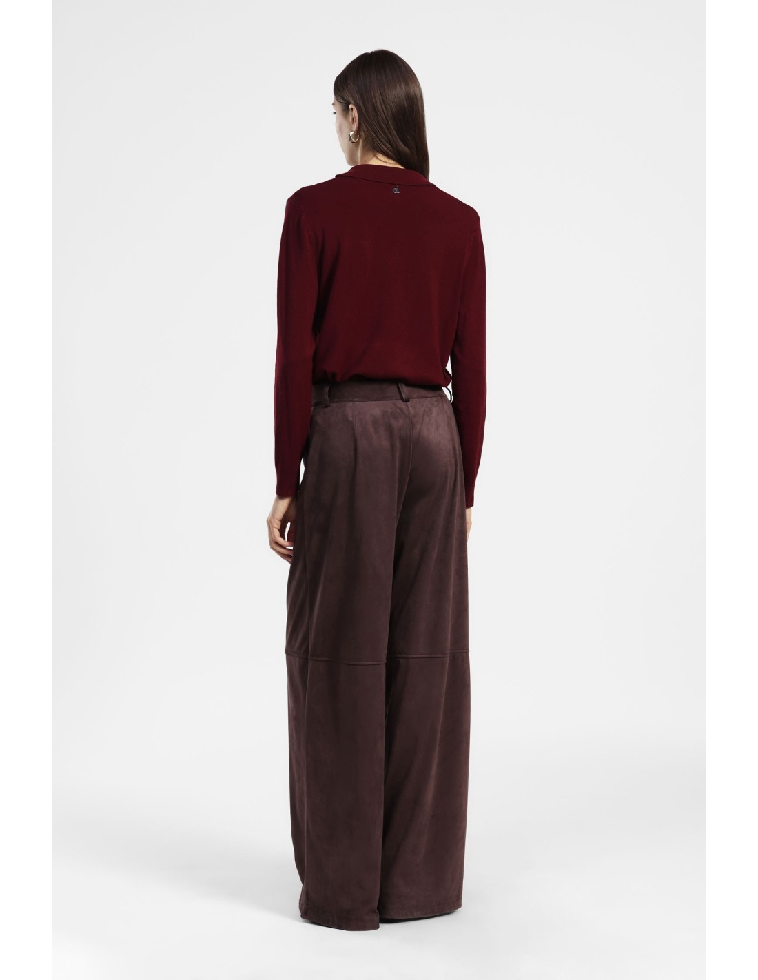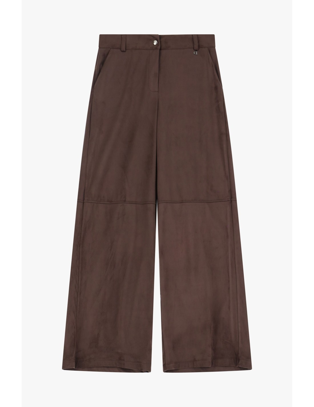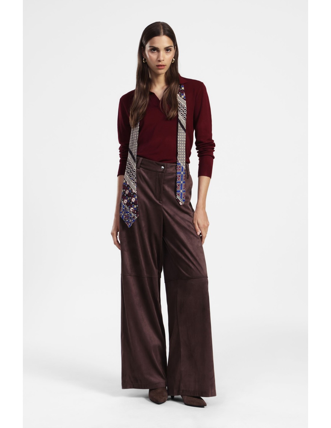 Deixe-se envolver por estas calças palazzo de cintura alta, com um corte largo e confortável. A costura horizontal nas pernas dá um toque distinto, perfeito para criar looks sofisticados mas fáceis de usar no dia a dia. Ideal com malhas leves e blazers para uma feminilidade autêntica.