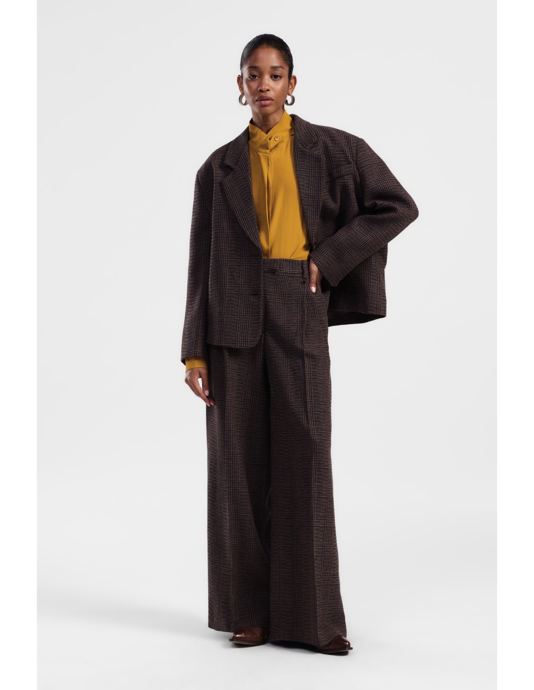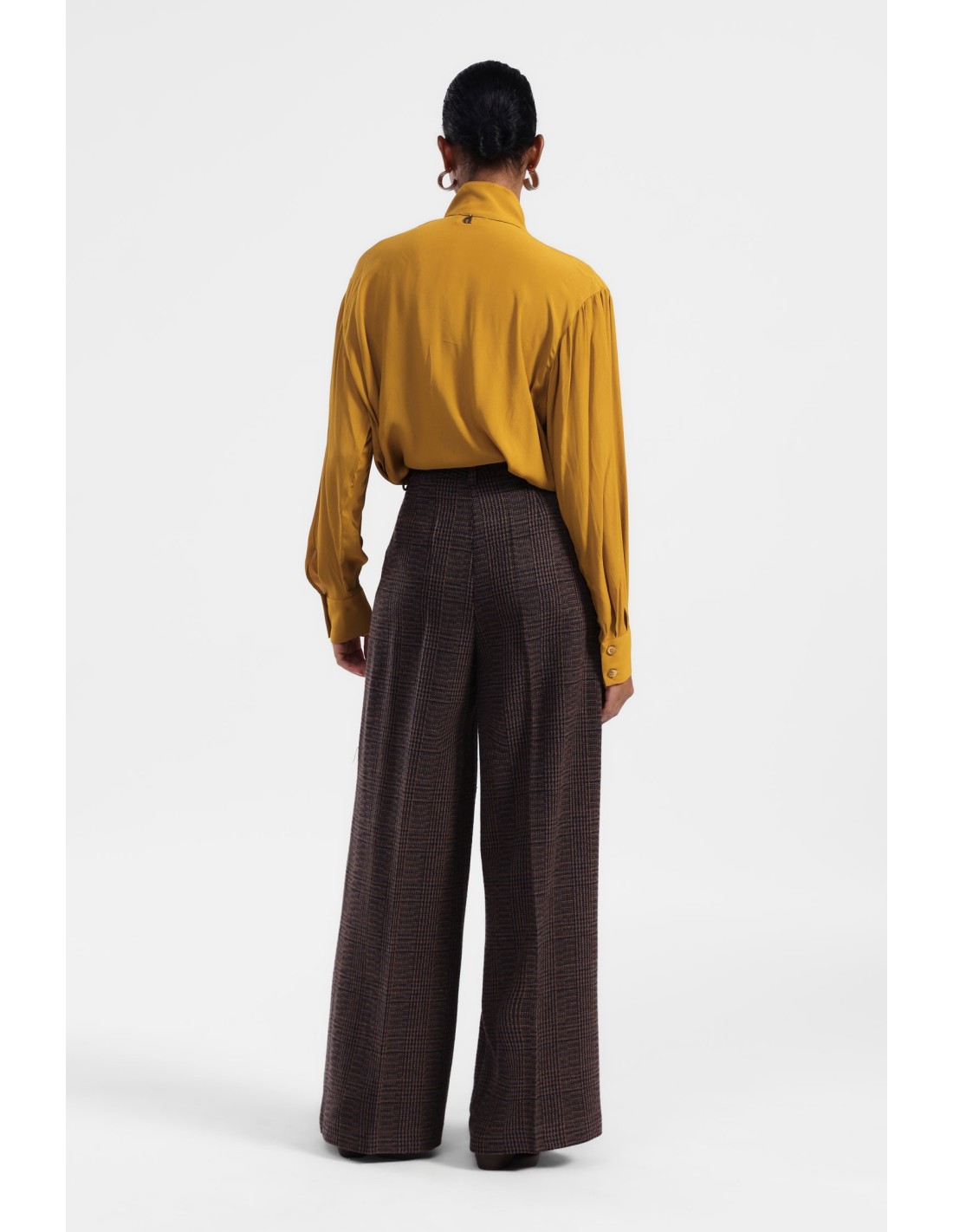Estas elegantes calças palazzo com um estampado requintado encaixam perfeitamente em qualquer guarda-roupa sofisticado. O corte largo garante conforto e estilo, enquanto a cintura alta acentua a silhueta esguia. Ideal para qualquer ocasião especial ou para dar um toque de sofisticação ao seu look do dia a dia.
