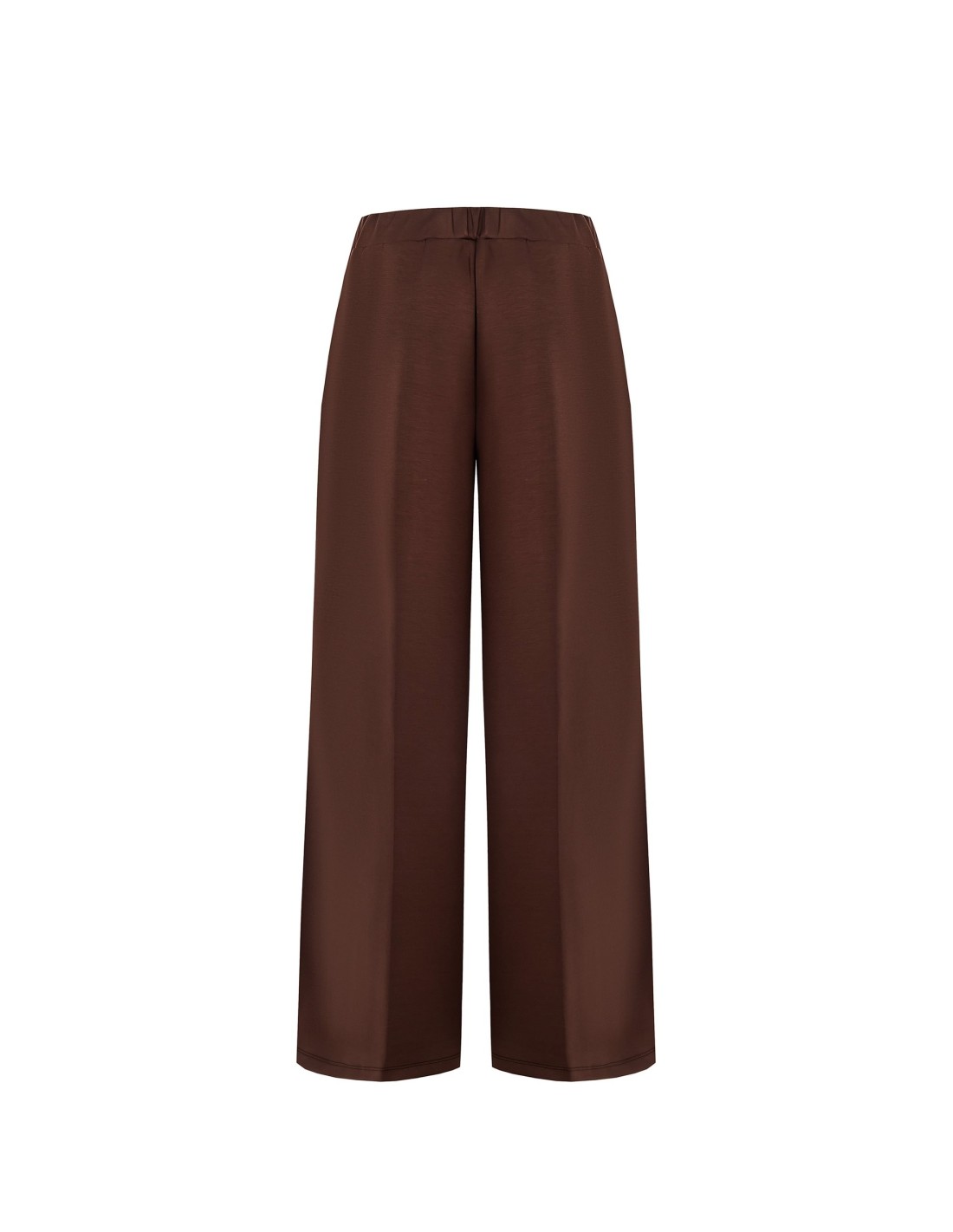Assinado Rinascimento: calças largas com pernas fluidas, corte descontraído que emagrece a silhueta. Tecido técnico macio com mão sedosa e caimento estruturado. Faixa lateral brilhante e cintura elástica com bolsos inclinados para maior conforto e arrumação. Versátil da secretária ao aperitivo, também é perfeito para o dia a dia chique.