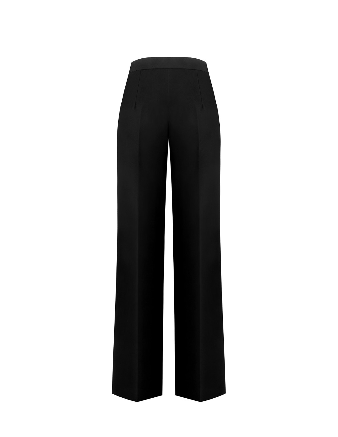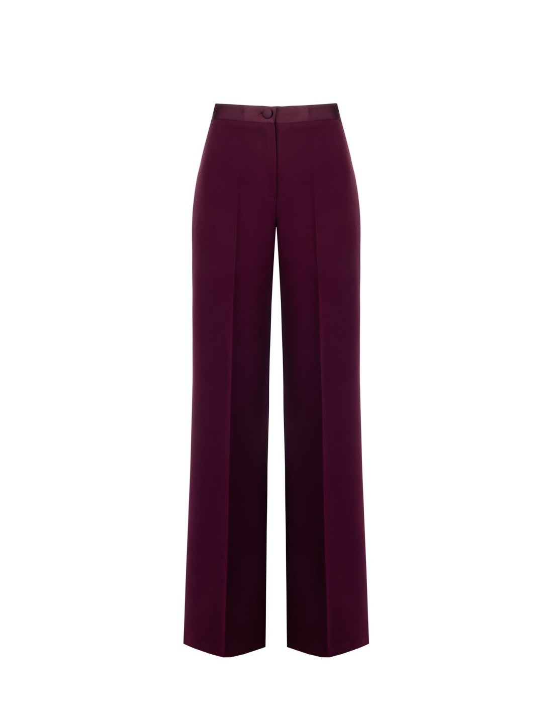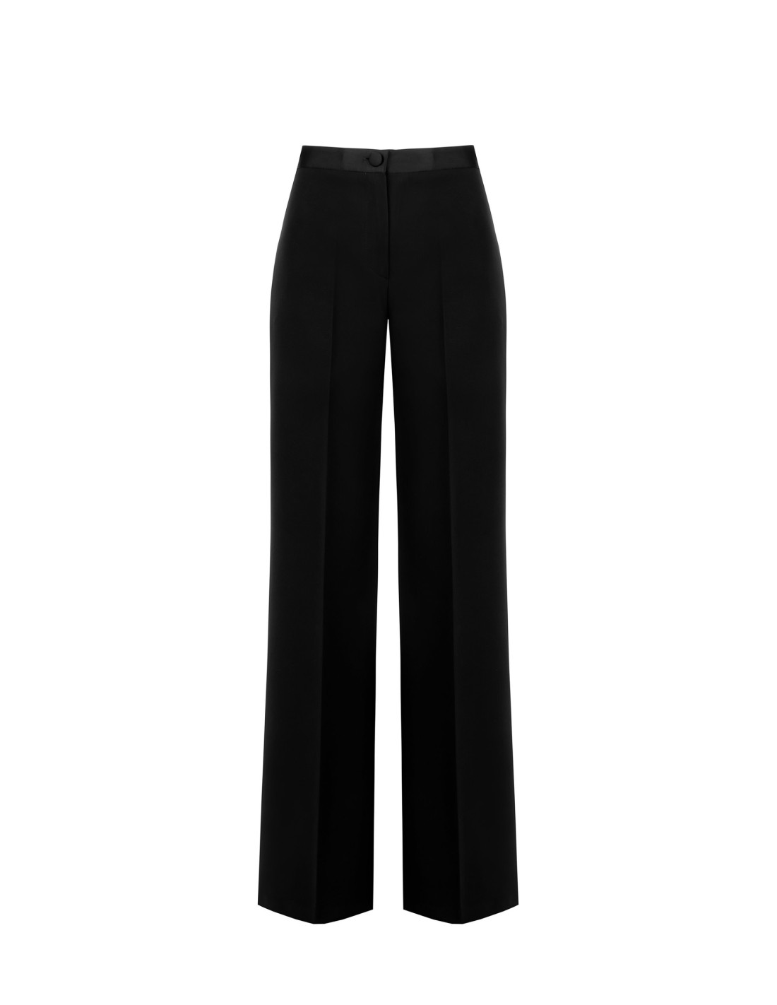 Calças Palace em tecido bi-elástico com cós de cetim Rinascimento