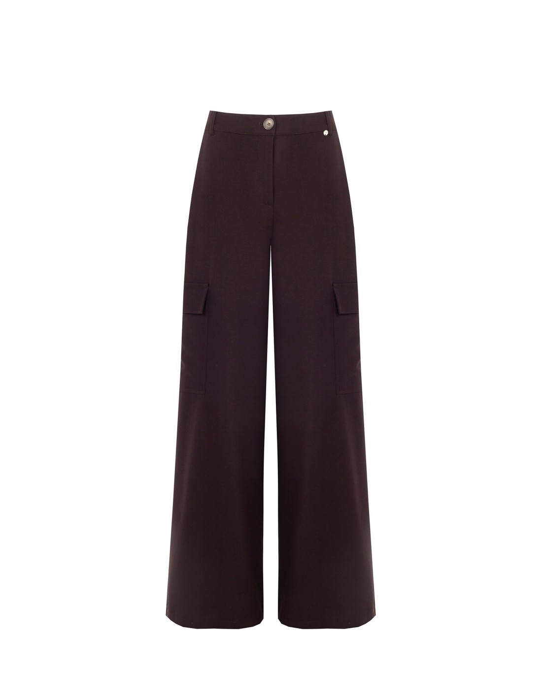 Calças Palazzo Cargo Em Tecido Poliviscosa Rinascimento