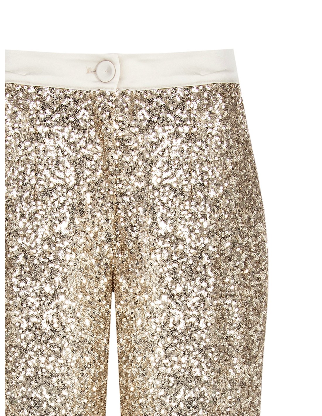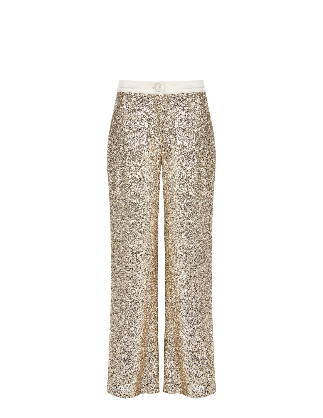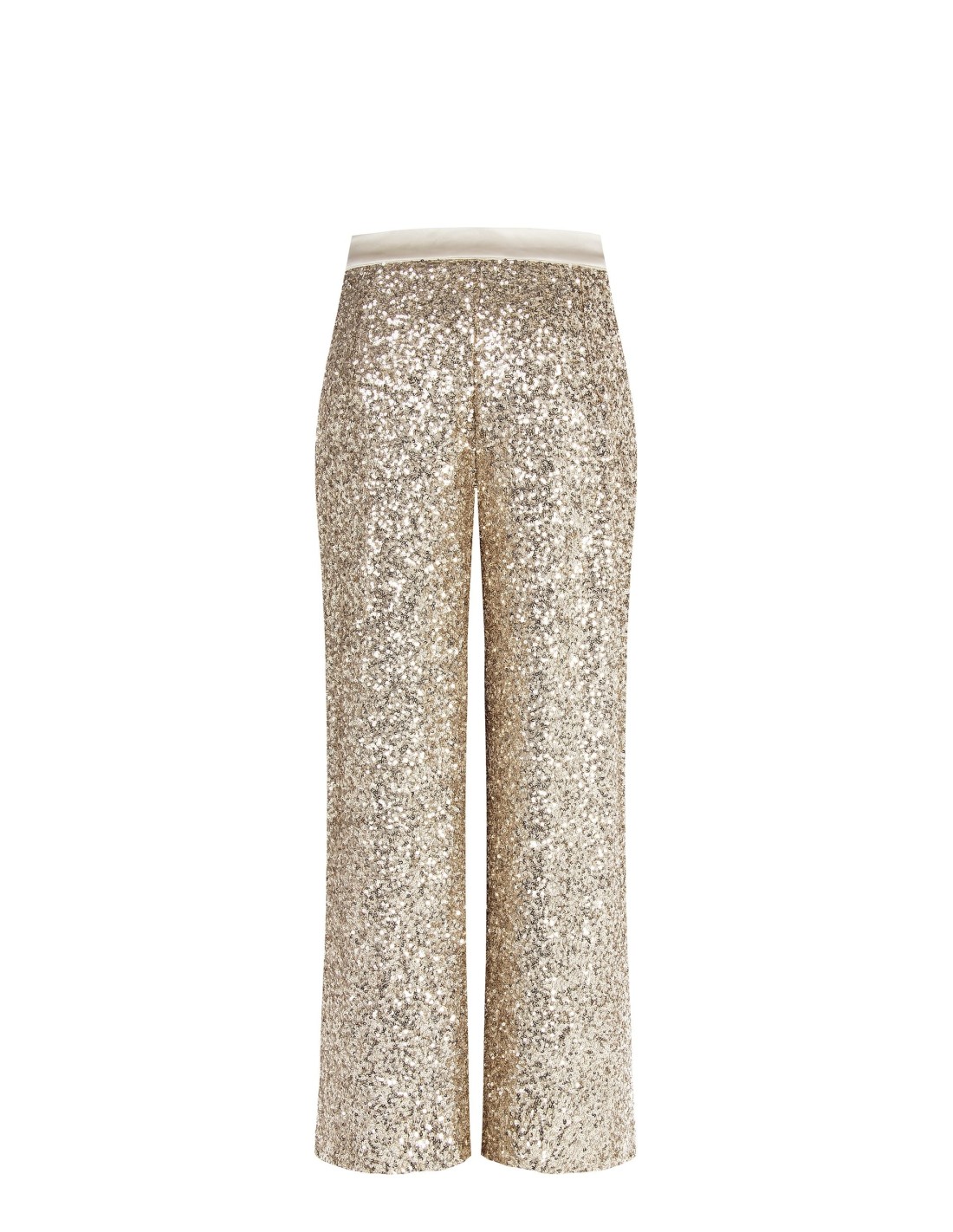 Calças Palazzo Cobertas De Lantejoulas Com Cós E Botão Em Cetim Rinascimento