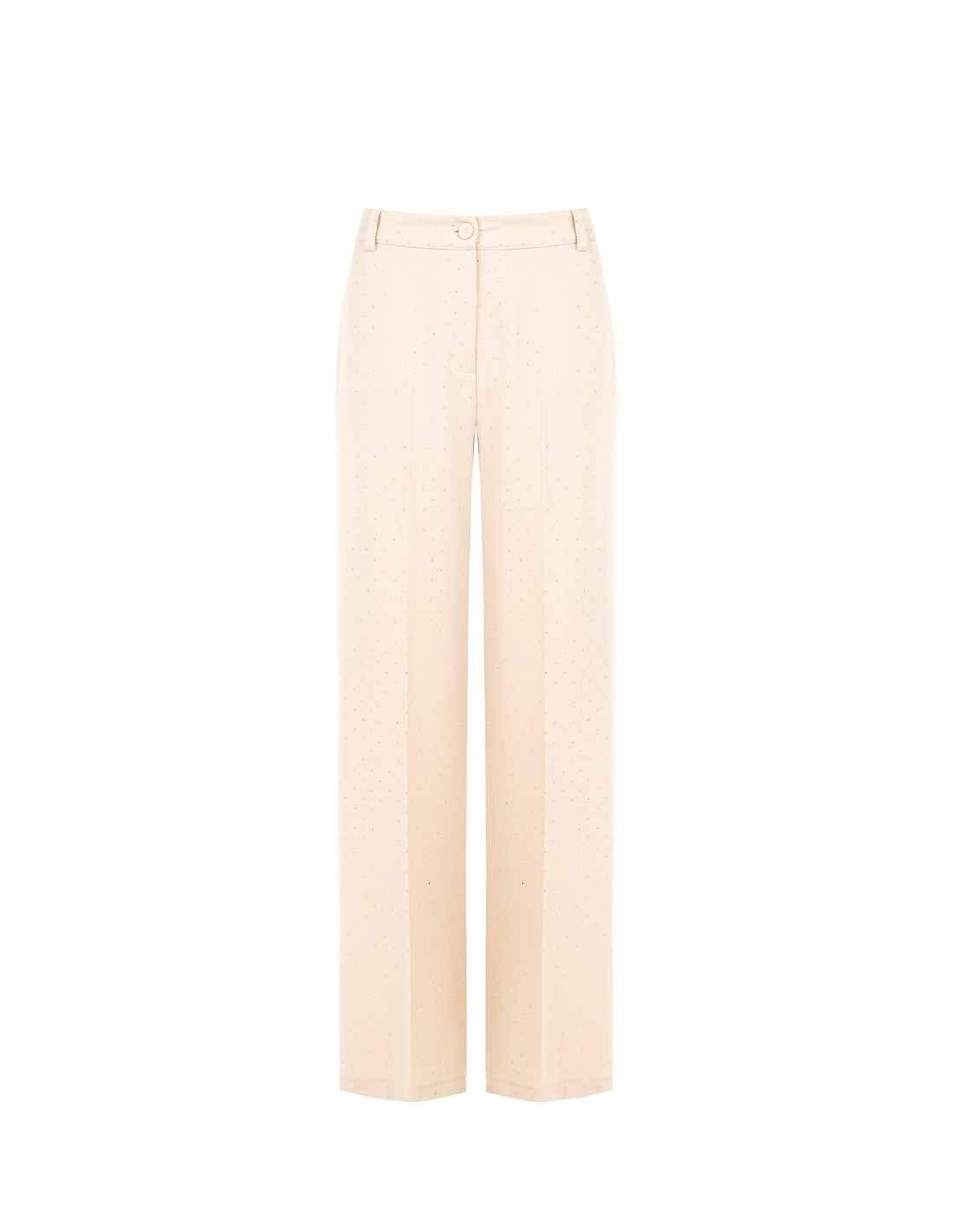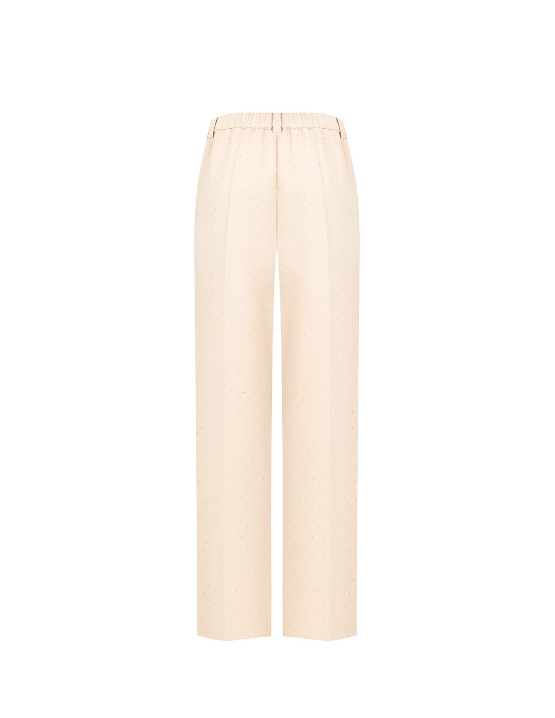 Calças Palazzo Cobertas De Mini Strass Com Elástico Atrás Rinascimento