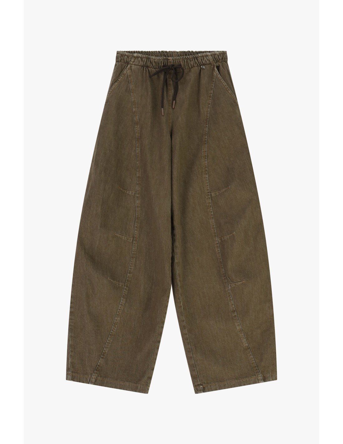 Estas calças palazzo de estilo descontraído combinam originalidade e conforto graças à cintura elástica com cordão e costuras visíveis que criam uma linha suave e dinâmica. Perfeitas para dias atarefados e momentos descontraídos, são fáceis de combinar e dão movimento a cada passo.