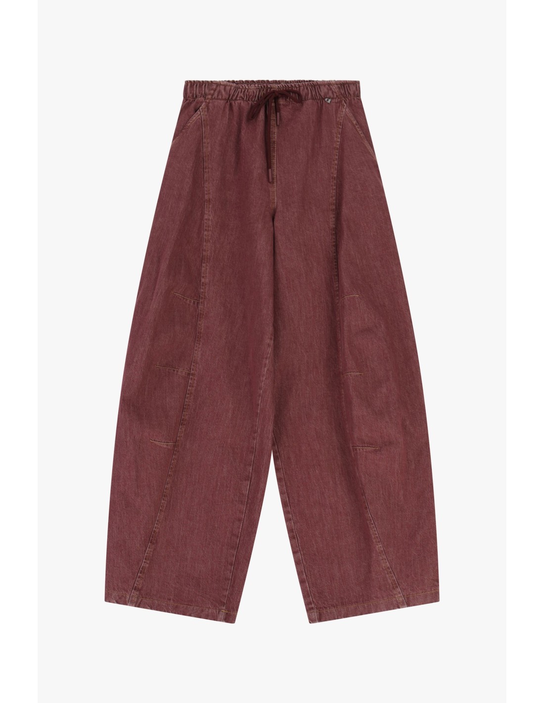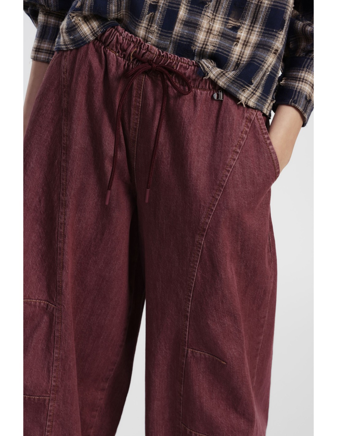 Estas calças palazzo de estilo descontraído combinam originalidade e conforto graças à cintura elástica com cordão e costuras visíveis que criam uma linha suave e dinâmica. Perfeitas para dias atarefados e momentos descontraídos, são fáceis de combinar e dão movimento a cada passo.