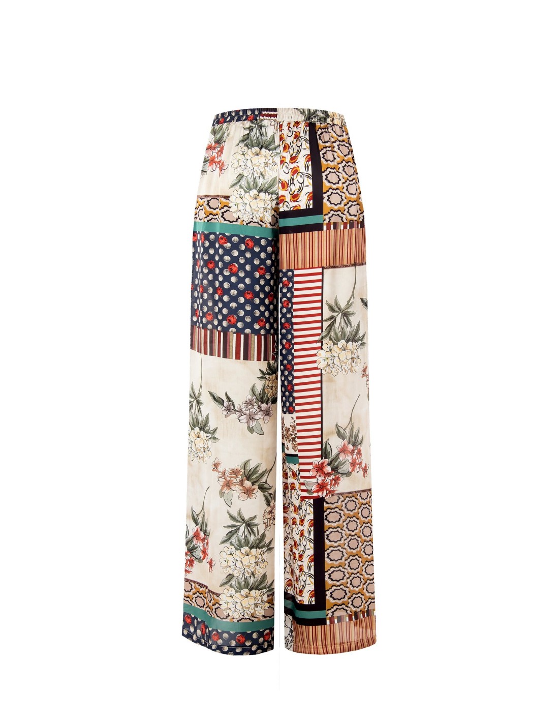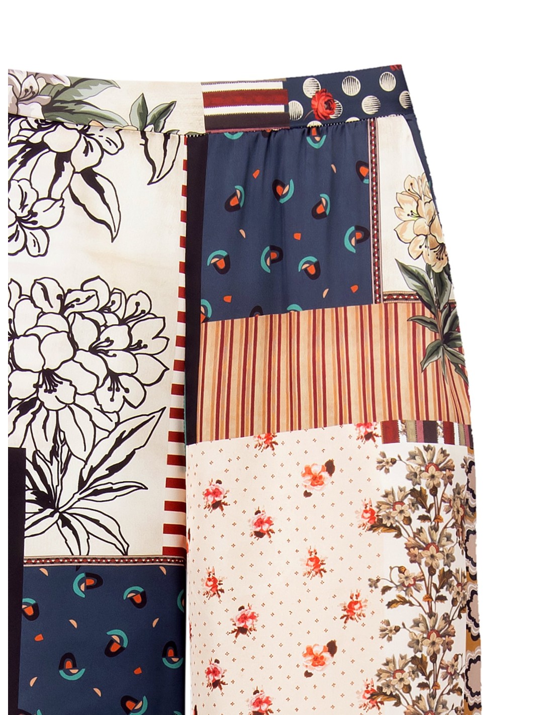 Calça de corte amplo e fluido, em cetim leve com textura luminosa que acaricia a silhueta com conforto. A estampa patchwork e os bolsos laterais acrescentam carácter e praticidade, enquanto a cintura realça de forma natural. Perfeita para o escritório, tempo livre ou um look para jantar.