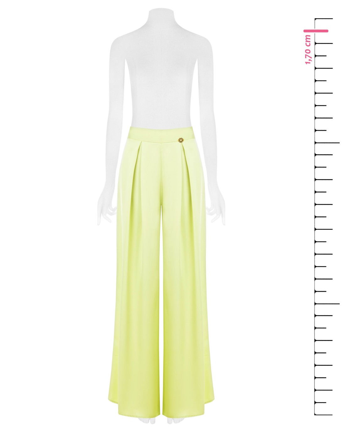 Linha ampla e fluida para estas calças de cintura alta, pensadas para alongar a silhueta com conforto e movimento. O cetim acaricia a pele com uma textura luminosa, enquanto as pinças frontais e o pequeno detalhe em forma de joia na cintura acrescentam um toque requintado. Perfeitas para escritório, eventos e chic do dia a dia.