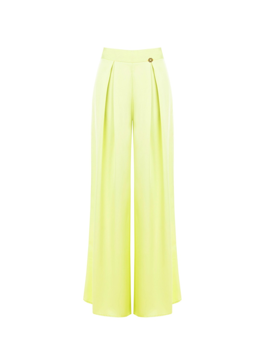 Calças Palazzo Em Cetim Com Pregas Rinascimento