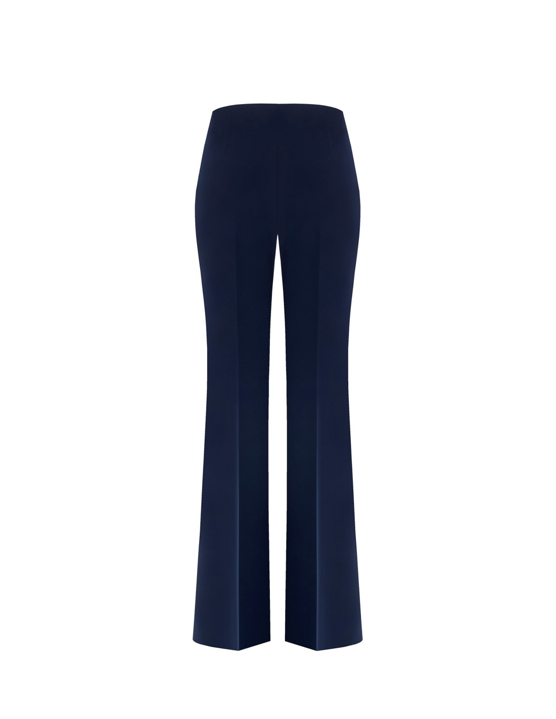 Calças largas de cintura alta, corte fluído que alonga a silhueta. Confeccionadas em crepe macio e ligeiramente estruturado para conforto e queda impecável. Fecho lateral invisível e vinco frontal. Versáteis do escritório ao jantar: perfeitas com blazer para o trabalho ou com tops brilhantes para festas e ocasiões especiais.