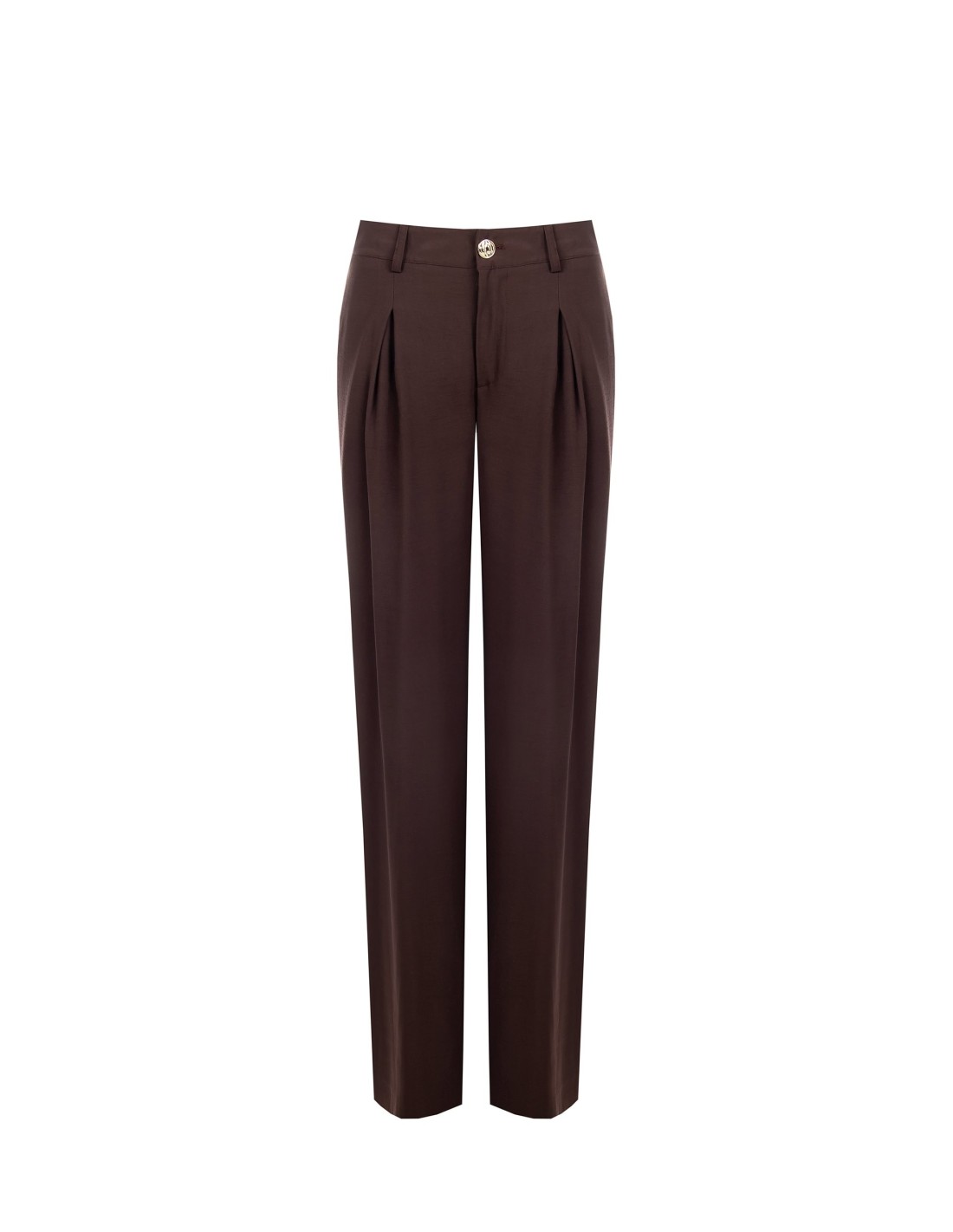 Calças de corte amplo e fluido, com um caimento suave que acompanha a silhueta e garante conforto ao longo do dia. Em poliviscose com textura ligeiramente amarrotada, são acabadas com pregas frontais e botão metálico na cintura. Perfeitas para o escritório, encontros e everyday chic.