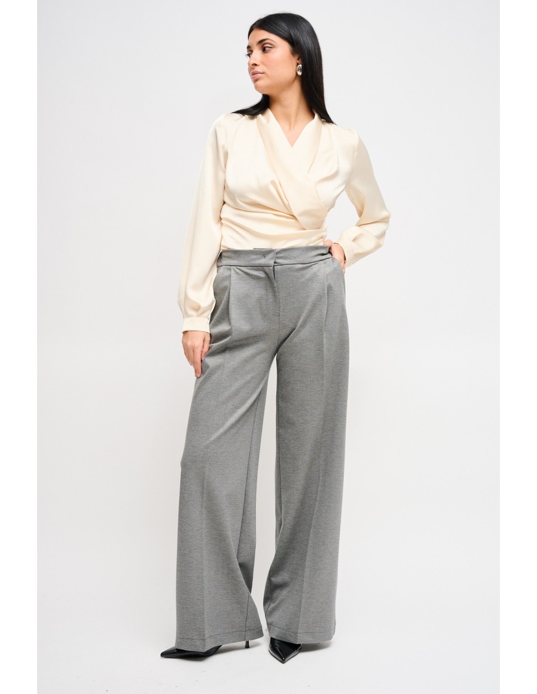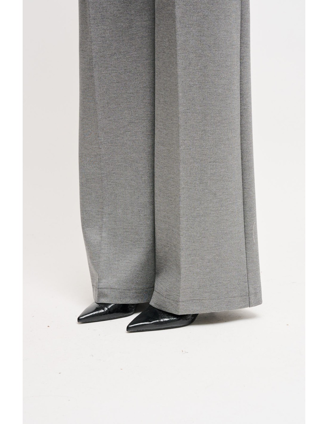 Maryley apresenta umas calças largas de perna reta, corte fluido que alonga a silhueta. Confeccionadas em Ponto Milano elástico, garantem conforto e firmeza. Cintura regular com fecho escondido, vinco passado e bolsos laterais para um toque de alfaiataria. Perfeitas do escritório ao aperitivo.