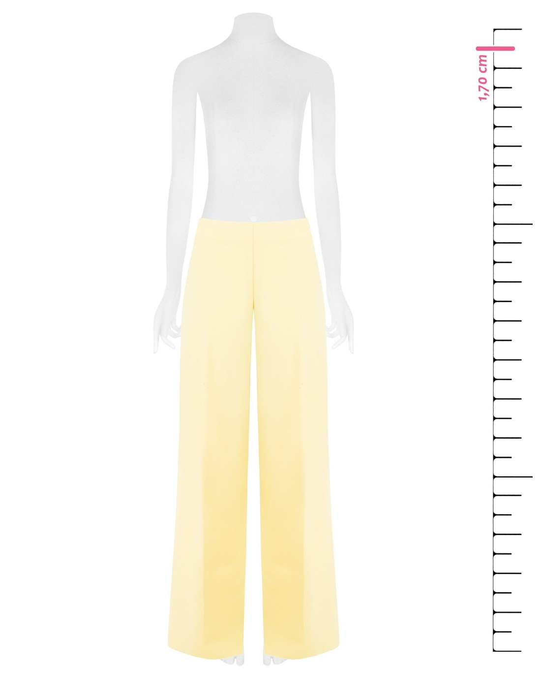 Com corte amplo e fluido, este modelo em poliviscose acaricia a silhueta com conforto e movimento. A cintura alta alonga a figura, enquanto o fecho lateral invisível mantém a linha limpa. Perfeito para o escritório, eventos requintados ou looks do dia a dia com um encanto essencial.
