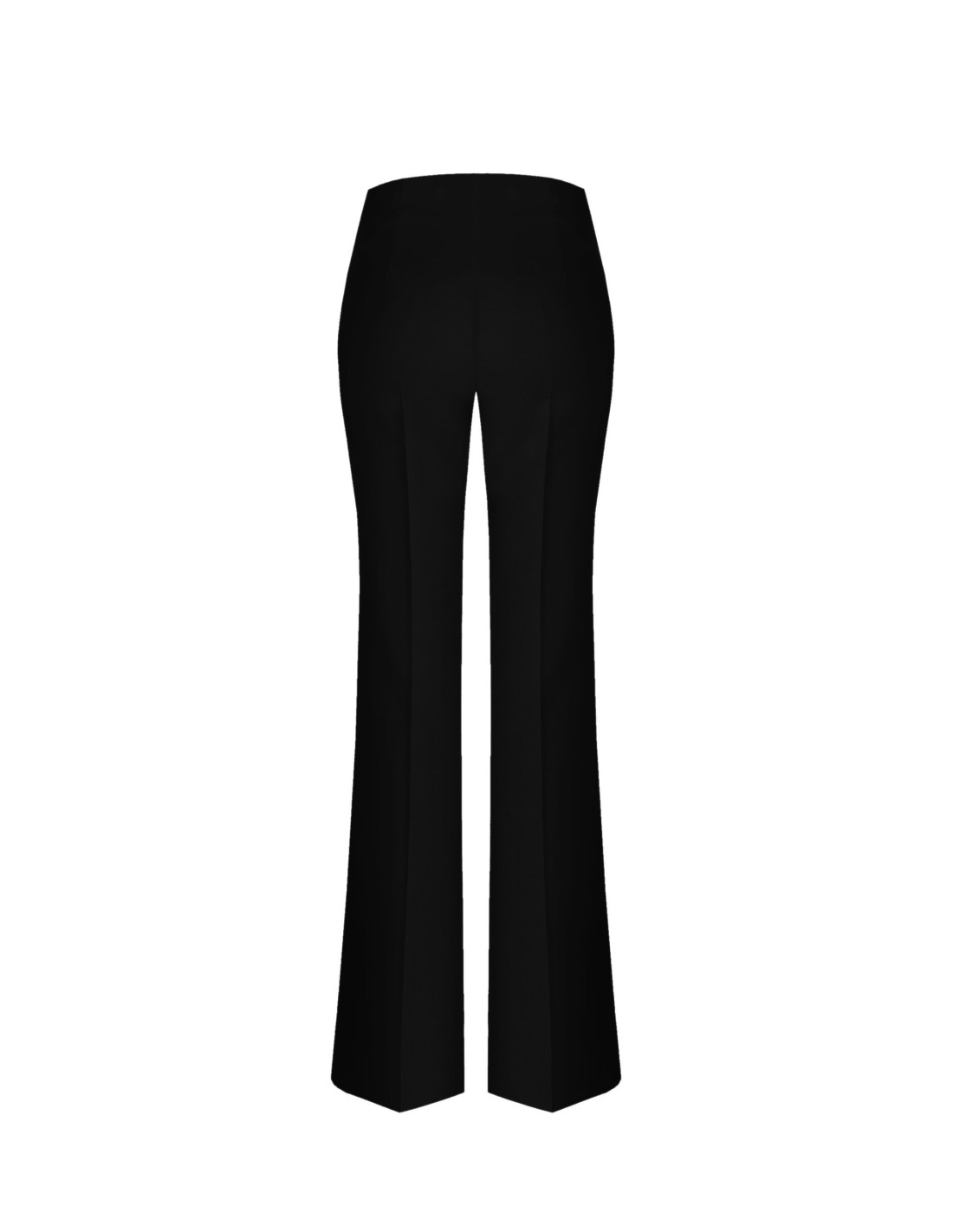 Pantalonas largas com cintura regular e um corte fluido que alonga a silhueta. Confeccionadas em tecido técnico elástico, sustentam e permanecem impecáveis durante todo o dia. Fecho lateral invisível e prega passada frontal como detalhes. Perfeitas para o escritório e para cerimónias ou eventos noturnos.